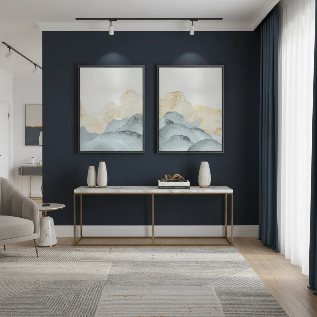 Capturing the essence of distant mountain peaks through moody, abstract silhouettes, this duo brings depth and rugged character to your space. The minimalist application of color ensures it remains modern while evoking a powerful, grounding sense of landscape.