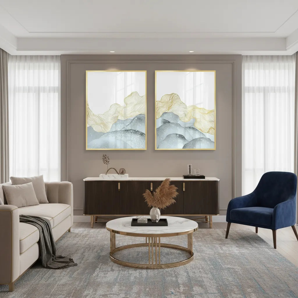 Capturing the essence of distant mountain peaks through moody, abstract silhouettes, this duo brings depth and rugged character to your space. The minimalist application of color ensures it remains modern while evoking a powerful, grounding sense of landscape.