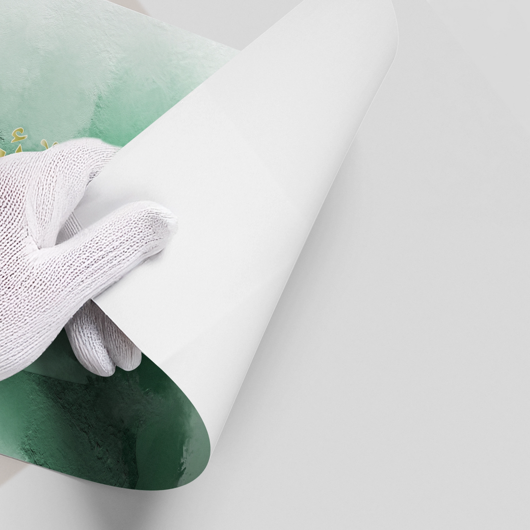 Bring divine protection and peace to your home with The Best Protector art print from Jasmine Art. Featuring the powerful Quranic verse "But Allah is the best protector, and He is the most merciful of the merciful" in radiant metallic gold calligraphy. The calligraphy is set against a stunning abstract background of emerald green and soft grey brush strokes, evoking a sense of spiritual tranquility. Finished with our signature premium vertical texture, this landscape piece offers a luxurious tactile feel and unmatched depth. An ideal spiritual statement for a living room, entryway, or majlis in Dubai.
