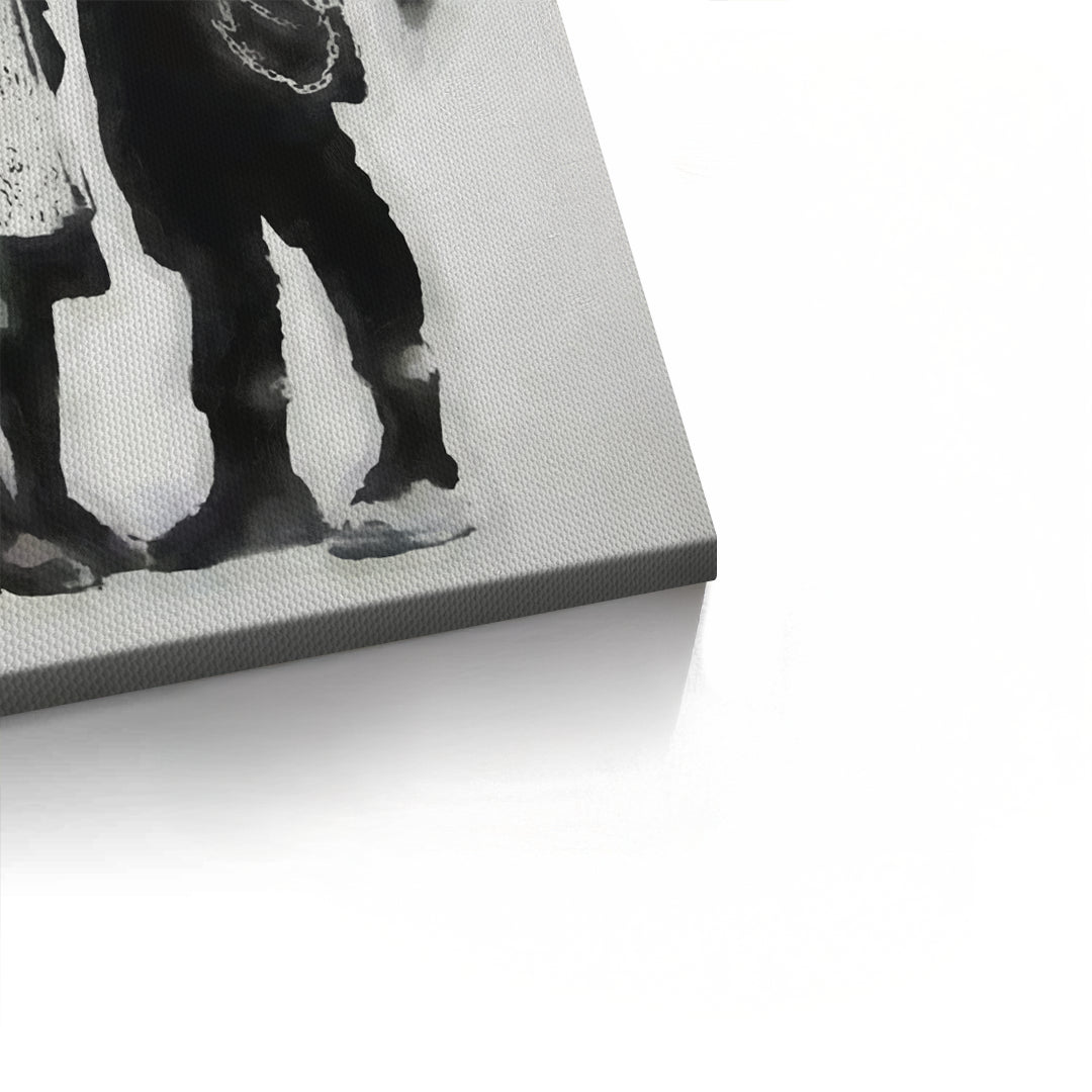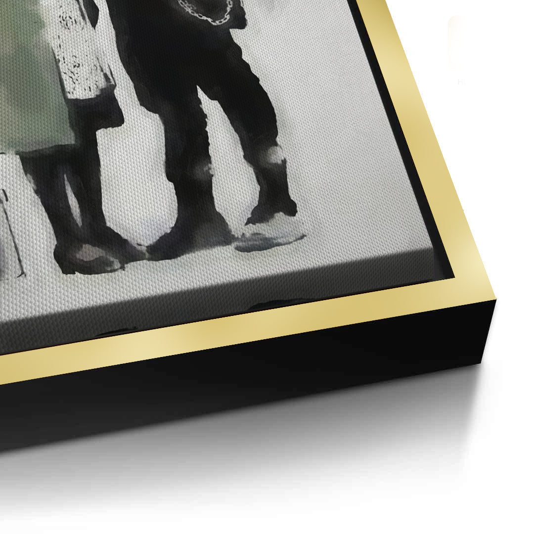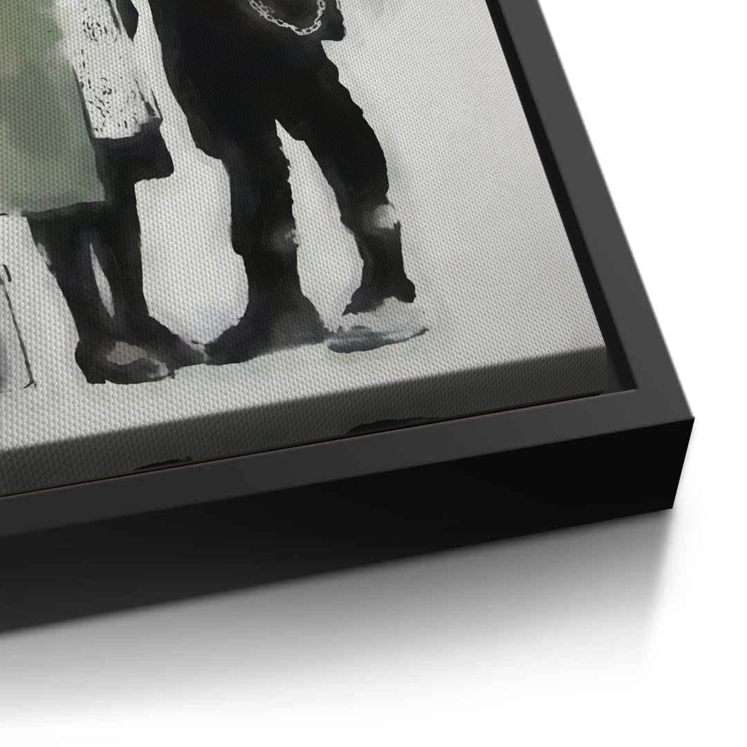 Explore the bridge between rebellion and care with the Anarchy and Peace art print from Jasmine Art’s Banksy collection. This thought-provoking piece depicts a punk activist and an elderly woman sharing a tender moment, blending symbols of anarchy and peace in a single frame. The subtle color palette with a striking red accent creates a sophisticated urban aesthetic. Finished with our signature premium vertical texture, this print offers a high-end tactile finish and gallery-quality depth. A powerful conversation piece for a modern study, creative office, or a stylish living room in Dubai.