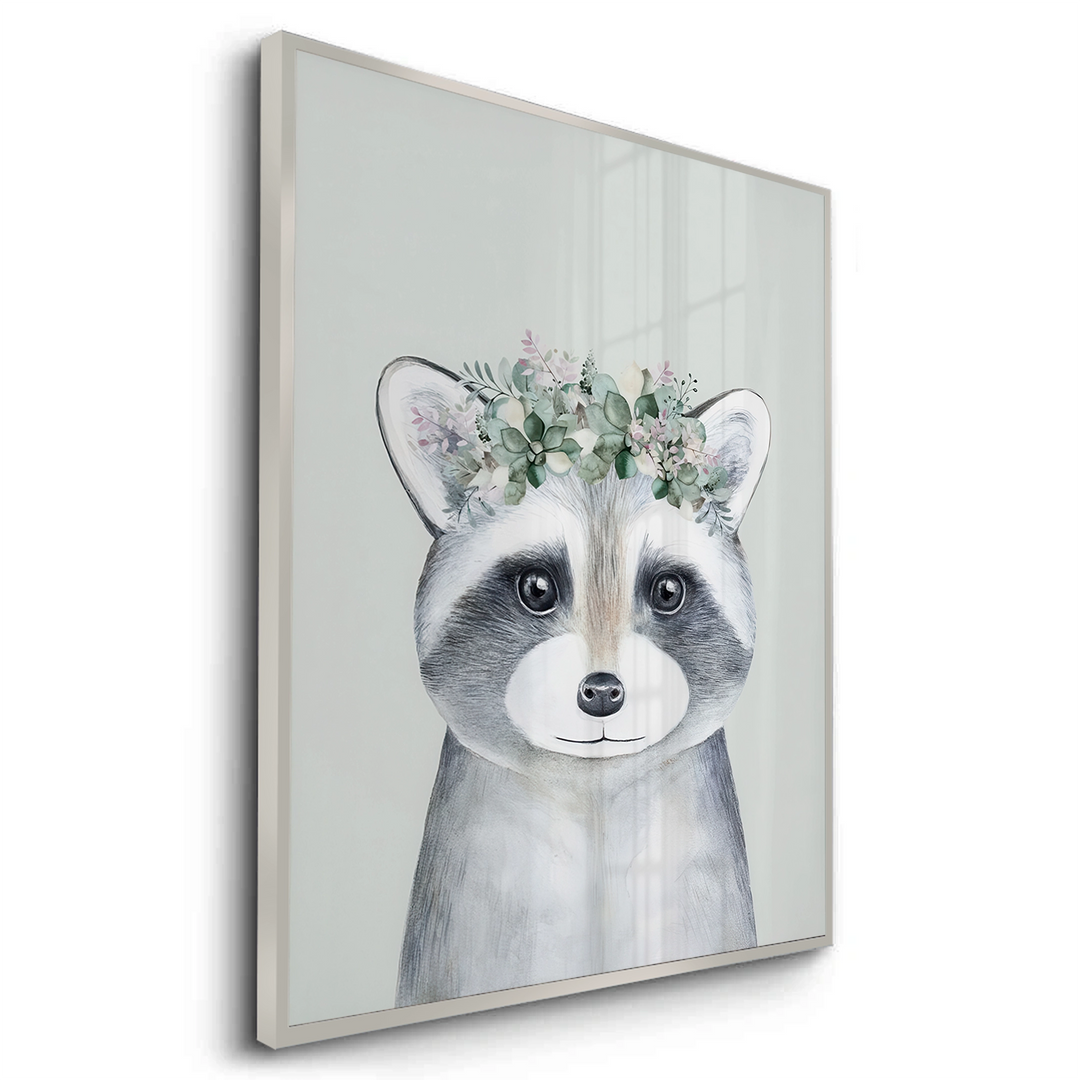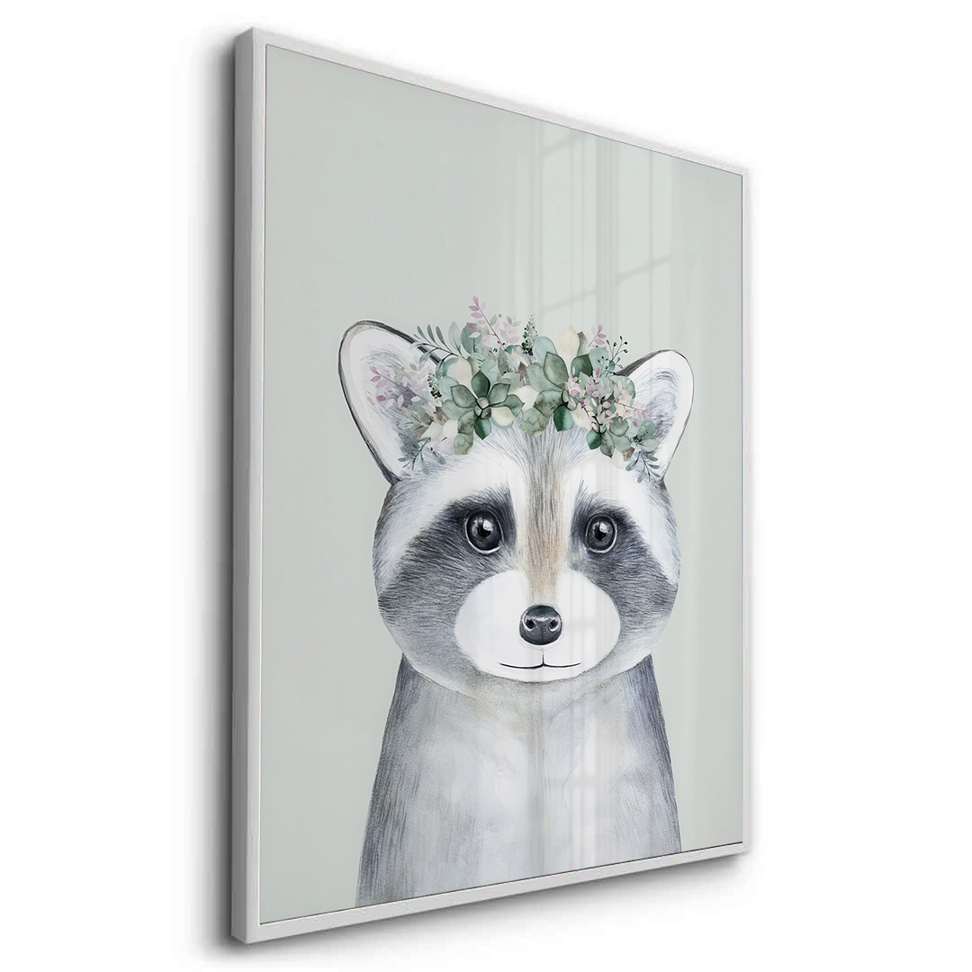 A beautifully soft and detailed print of an utterly adorable Baby Raccoon. This gentle animal portrait, often featuring muted earth tones, is perfect for a nature-themed nursery, creating a calm and loving atmosphere in the UAE home.