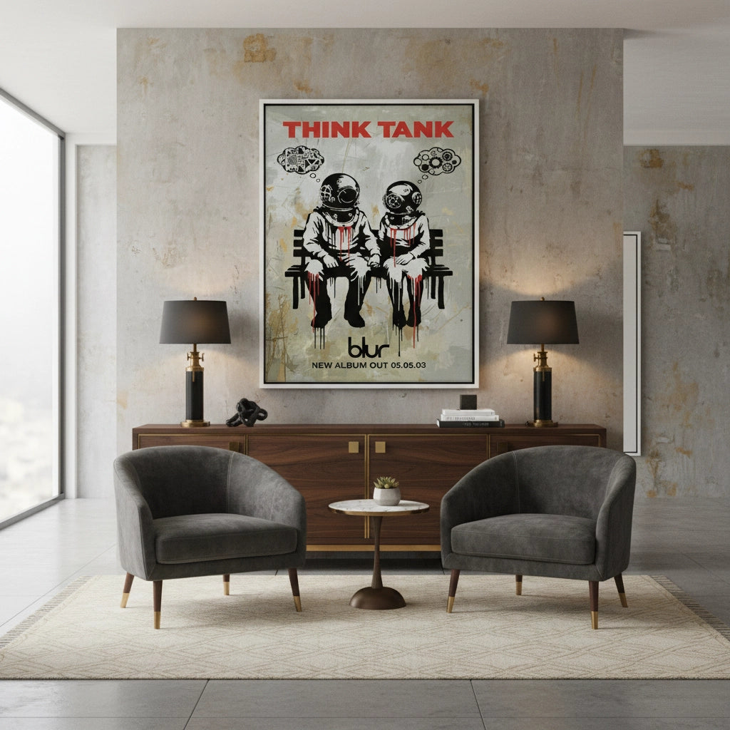 Make a bold statement with the Modern Thinking Chimp from Jasmine Art’s Banksy Artwork collection. This iconic street-art inspired piece features a contemplative chimpanzee with colorful headphones, blending gritty urban stencil style with vibrant pop-art accents. Its edgy composition and striking color contrast bring a modern, intellectual energy to any space. Finished with our signature premium vertical texture, this print offers exceptional tactile depth and a high-end gallery finish. A perfect centerpiece for a contemporary living room, a teen's studio, or a trendy office in Dubai.