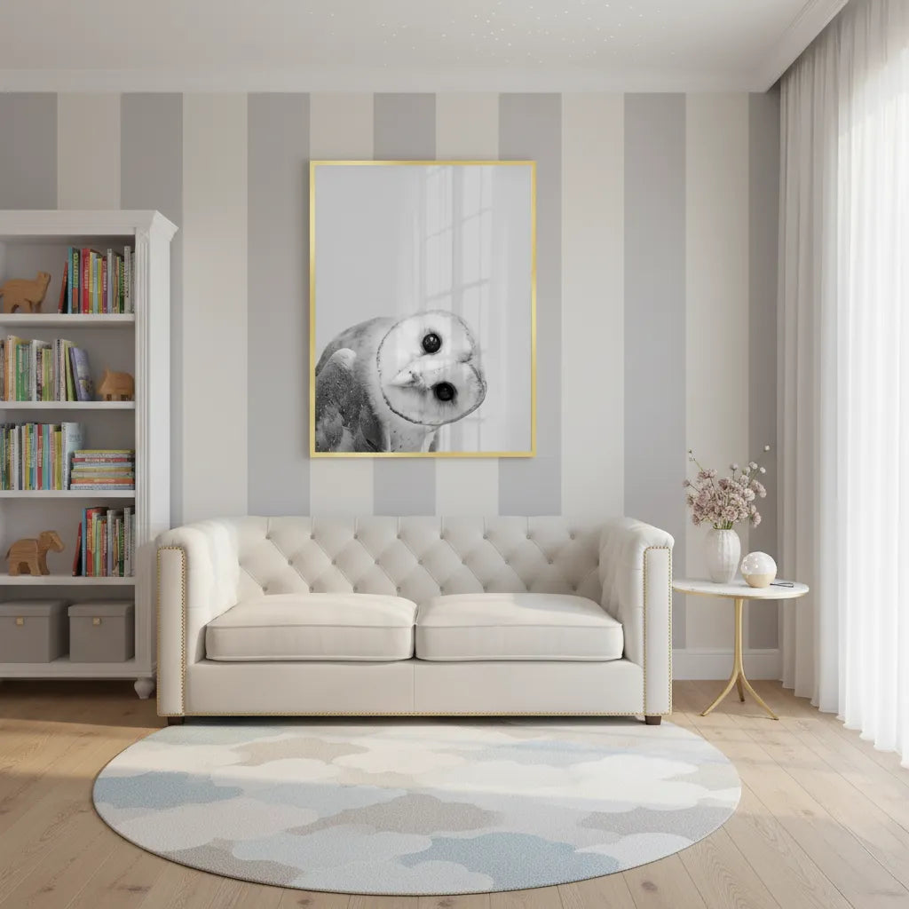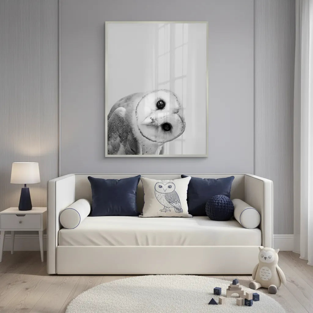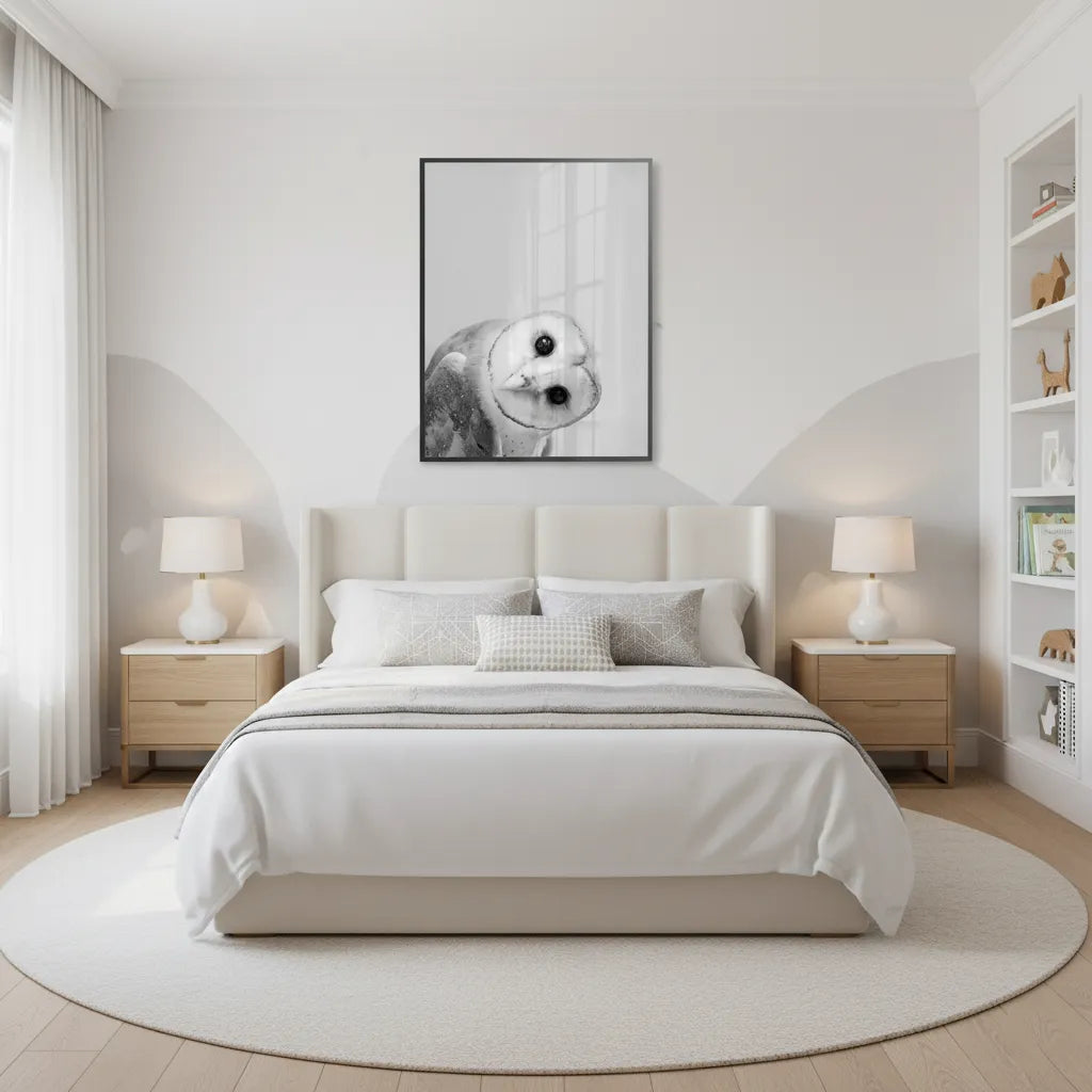 Bring the sophisticated magic of nature indoors with the serene Barn Owl print. Rendered in a detailed, calming style, this piece is a subtle and elegant choice for a luxury nursery or a woodland-themed bedroom in Dubai.