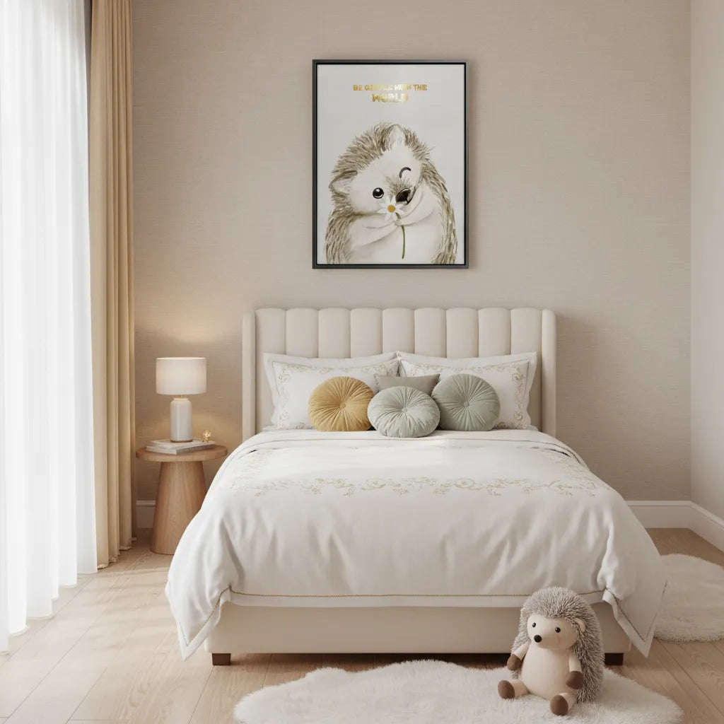 A beautifully thoughtful print, Be Gentle with the World promotes essential values of compassion and environmental kindness. This soft, nurturing piece is ideal for creating a mindful environment in a Dubai family home.