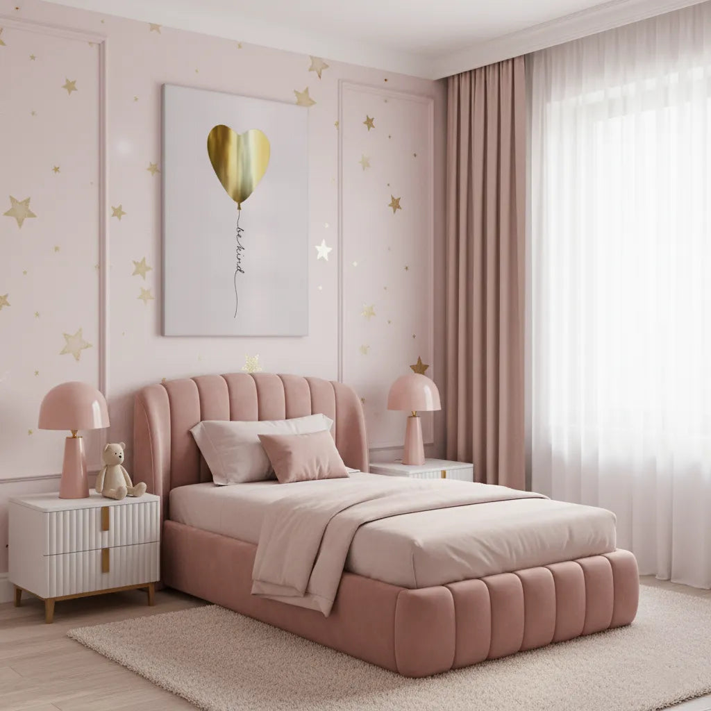 The Be Kind print is an essential piece of motivational nursery decor, featuring gentle colors and a timeless, positive message. It serves as a beautiful daily reminder for every child's room in Dubai.
