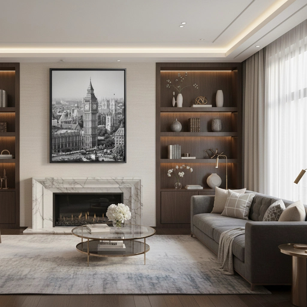 Step into the soulful heart of Marrakesh with the Ben Youssef Madrasa art print. This masterpiece captures the stunning symmetry of the historic courtyard, featuring intricate stucco carvings, traditional Zellij tilework, and a tranquil reflection pool. The warm terracotta tones and detailed geometric patterns celebrate the peak of Moroccan craftsmanship. Finished with our signature premium vertical texture, this print offers a luxurious tactile finish that brings the ancient stone and tile details to life. A perfect statement piece for a grand entryway, a serene lounge, or a cultural-inspired office in Dubai.