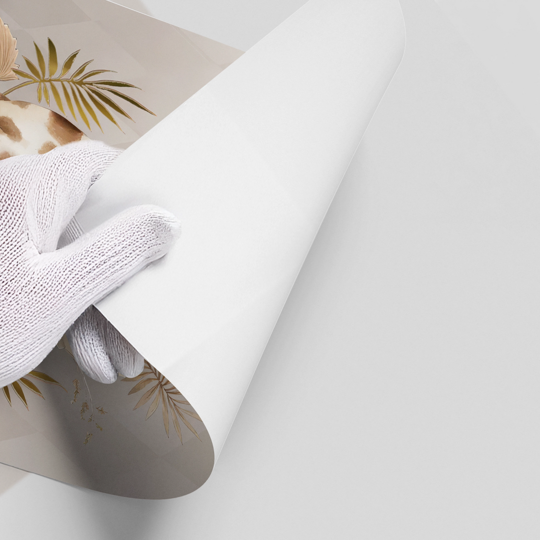 This cute Boho Giraffe print captures the animal's gentle spirit with hand-drawn, free-spirited patterns and warm, earthy tones. It's the perfect piece of Bohemian nursery art to add character and a cozy, natural feel to your baby's room.