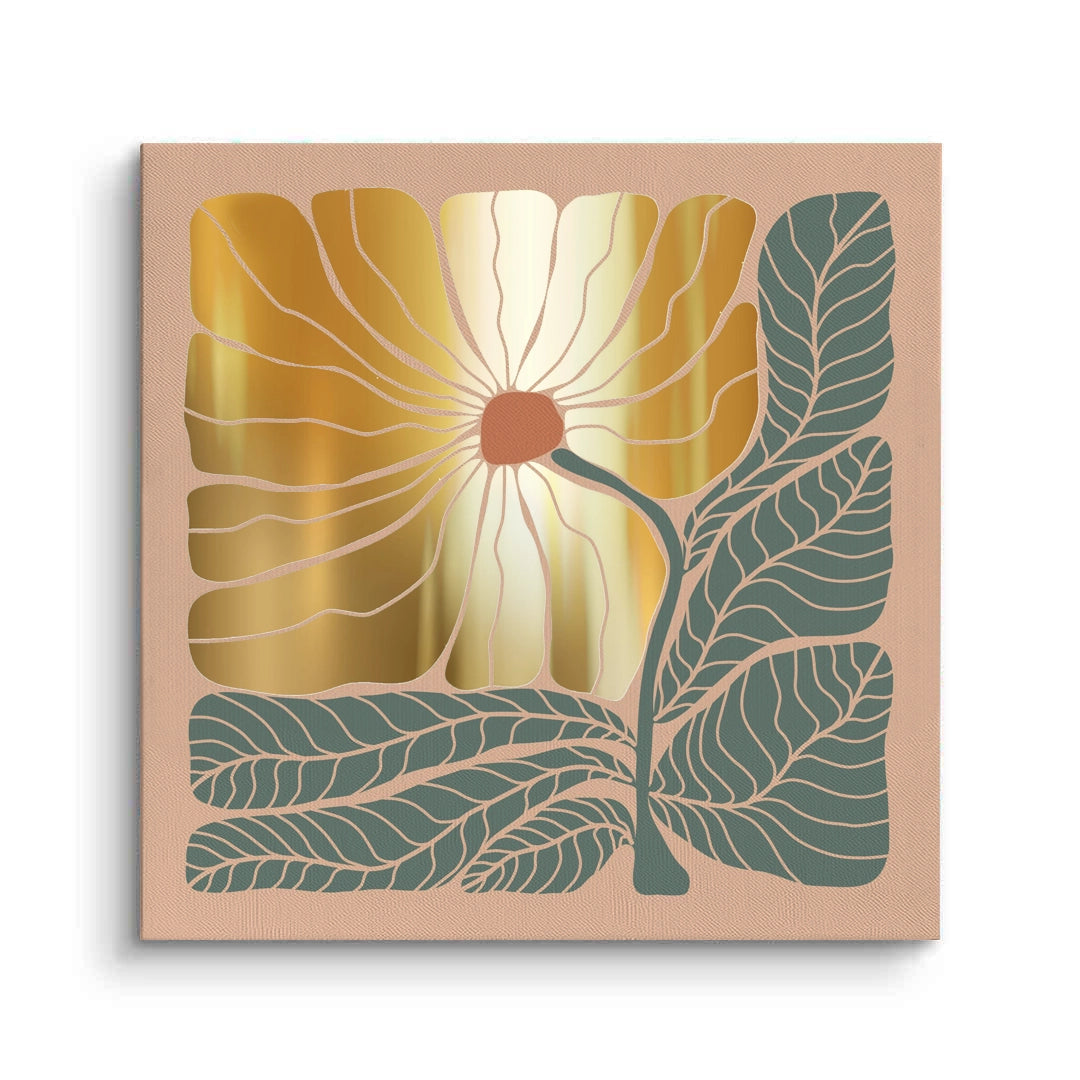 Boho Gold Bloom and Leaves - Canvas
