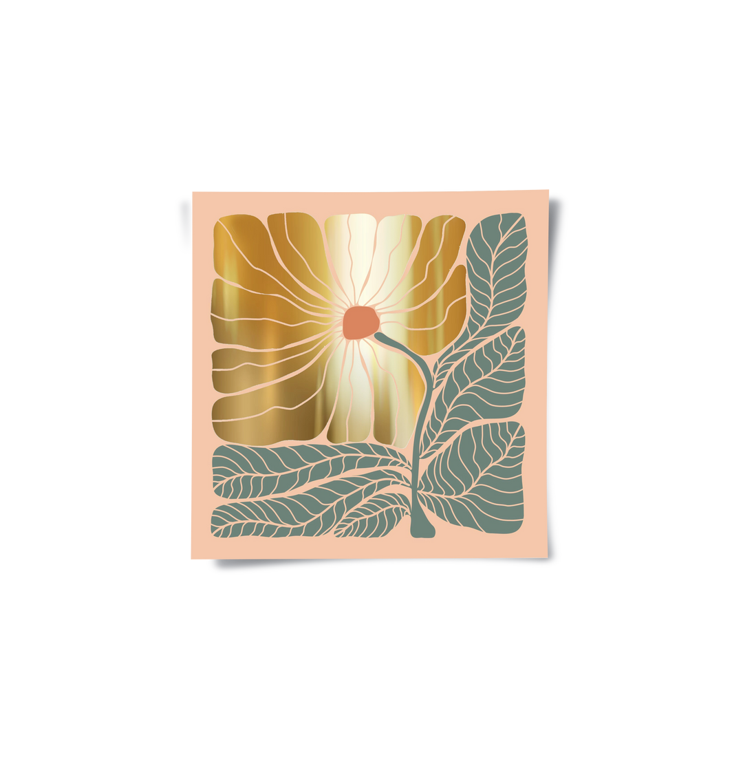 Boho Gold Bloom and Leaves - Poster