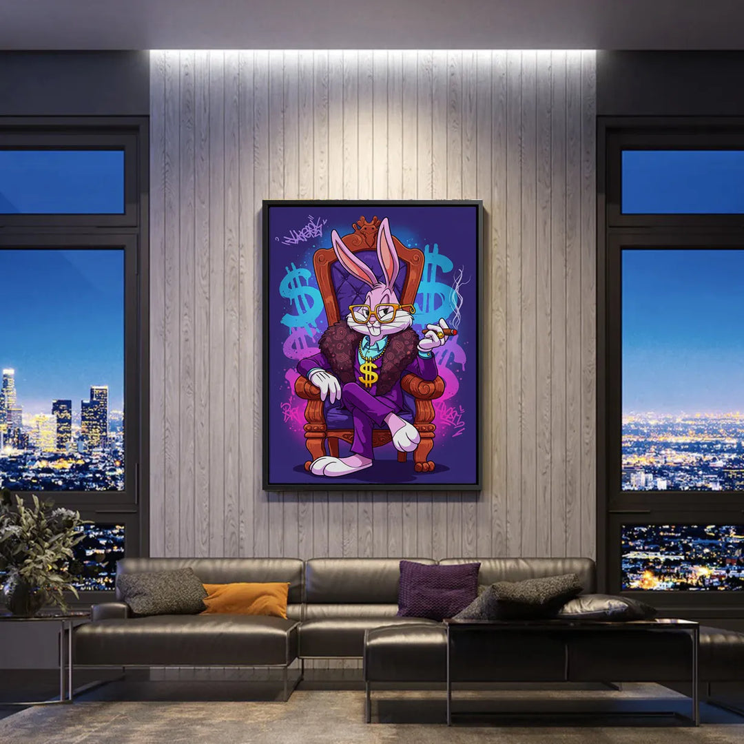Boss Bunny combines playful charm with fierce attitude, capturing a character that’s as bold as it is adorable. With vibrant colors and dynamic lines, this piece celebrates confidence, leadership, and a touch of cheeky fun. Perfect for spaces that embrace personality, energy, and a dash of whimsy.