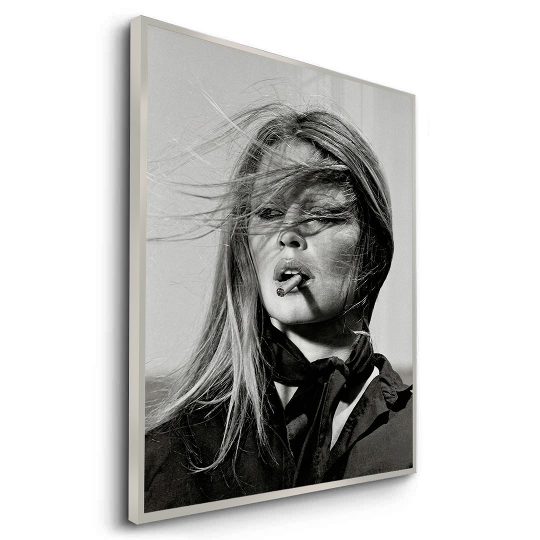 Channel the spirit of French rebellion with Bardot Noir from Jasmine Art’s Celebrities collection. This captivating black and white portrait features the legendary Brigitte Bardot in a defiant and cinematic moment, with wind-swept hair and a cigar. Capturing the raw beauty and bold attitude of the 1960s icon, this piece is a masterclass in vintage photography. Finished with our signature premium vertical-ribbed texture, this print offers exceptional tactile depth and a high-end gallery finish. A stunning statement piece for a sophisticated lounge, a private office, or a chic apartment in Dubai.
