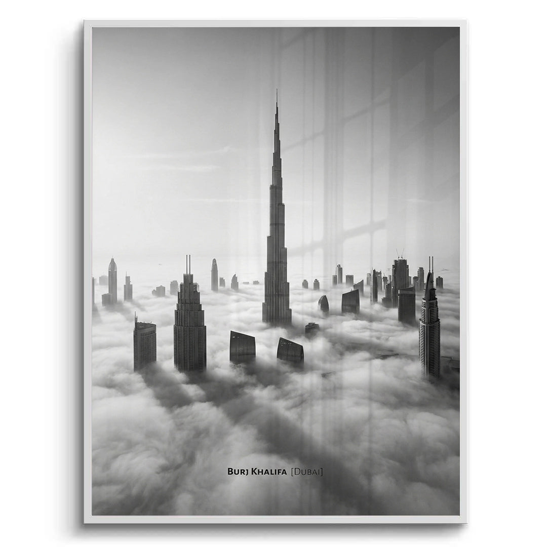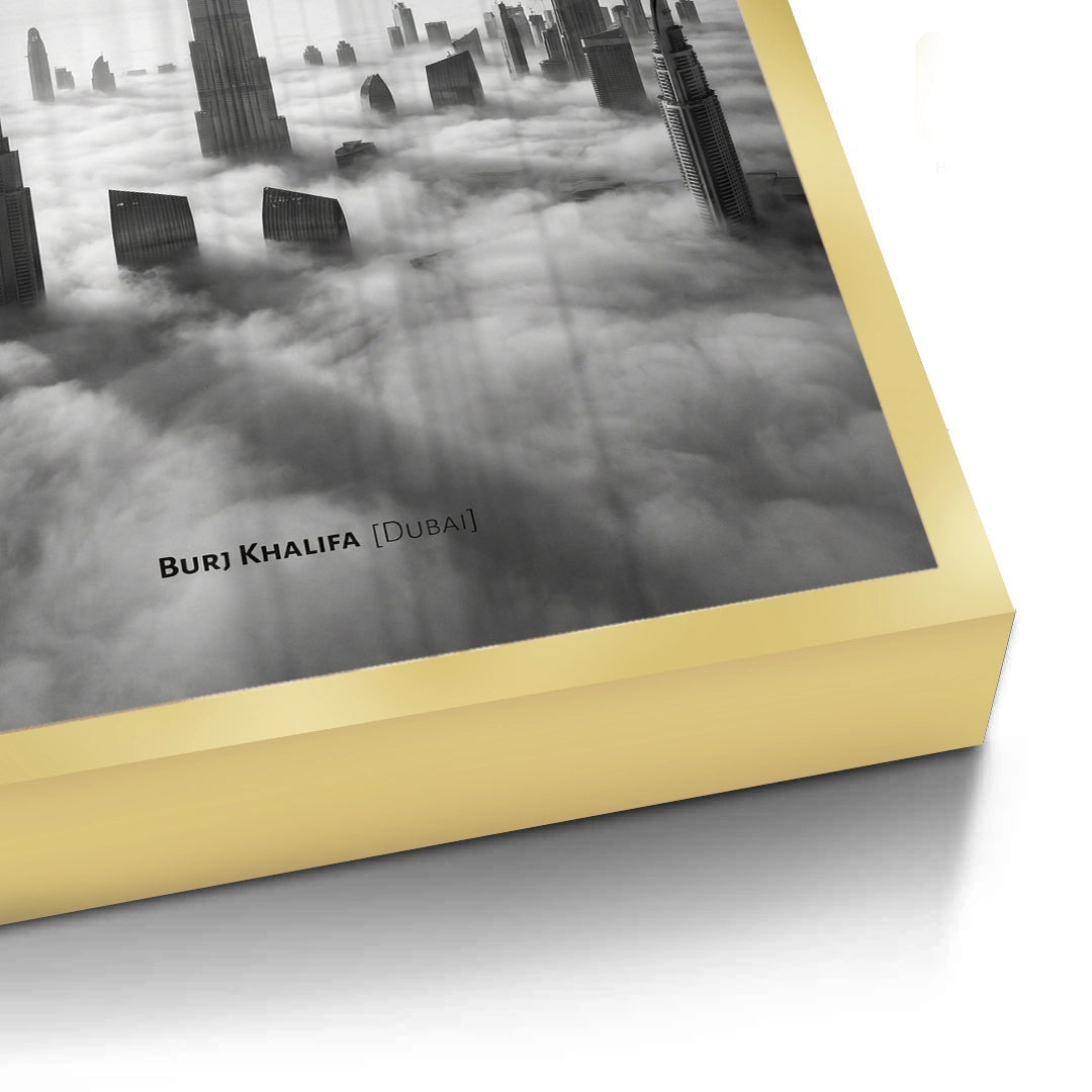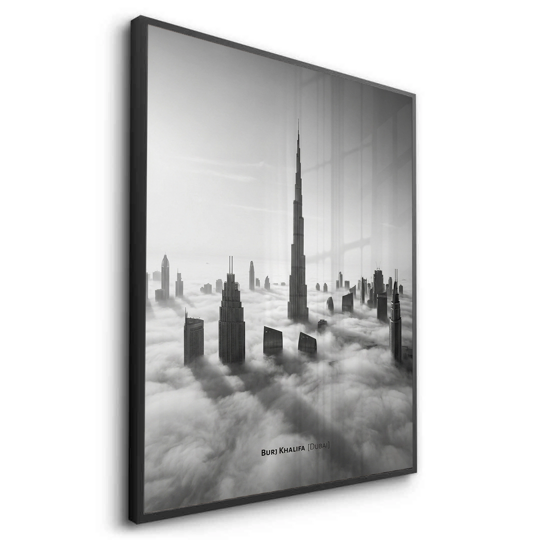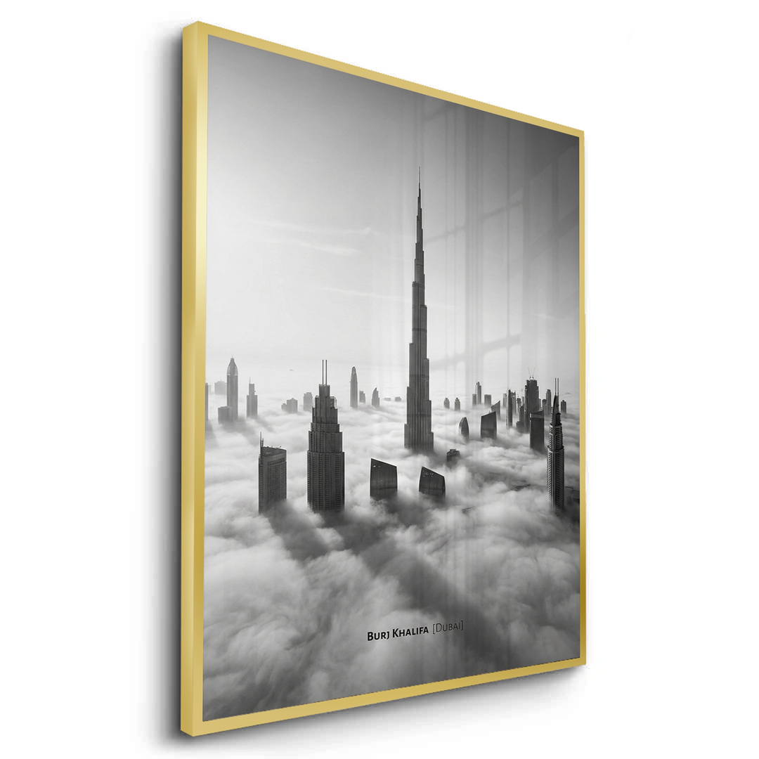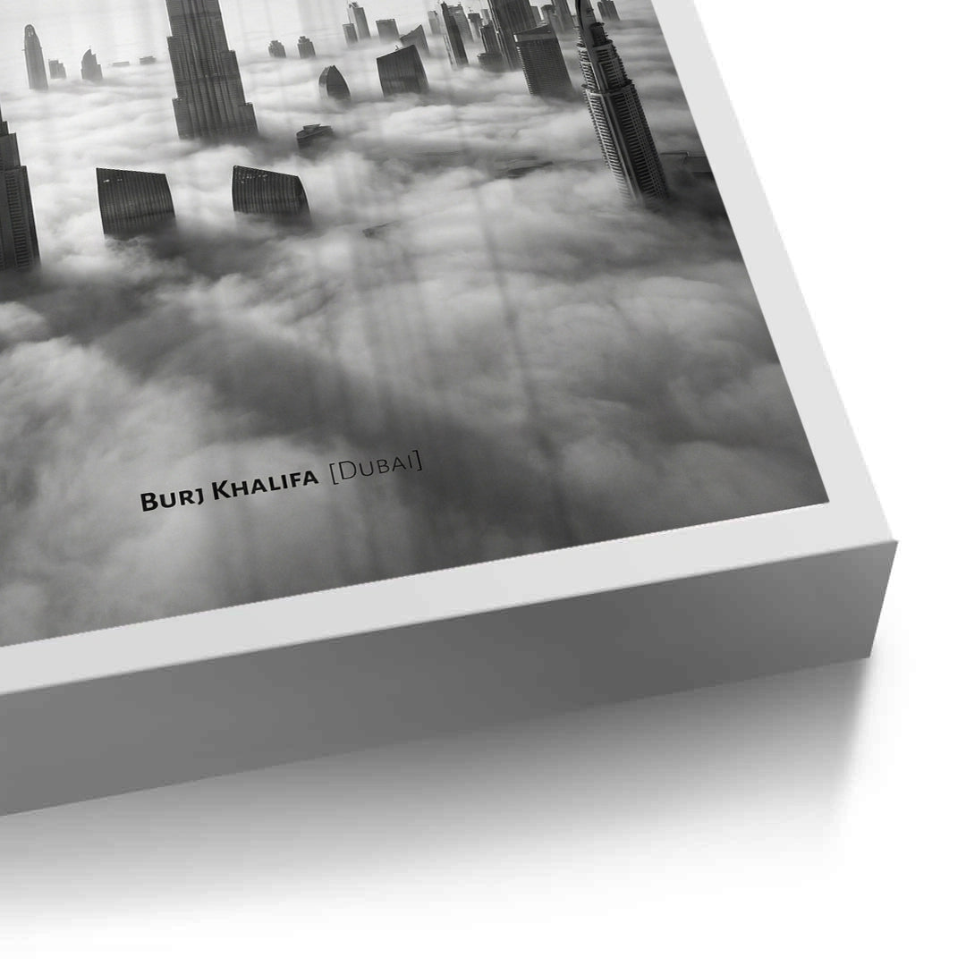 Experience the breathtaking heights of the world’s tallest building with the Burj Khalifa Above the Clouds art print. This stunning black and white photograph captures the Burj Khalifa piercing through a thick blanket of morning fog, surrounded by the peaks of Dubai’s skyline. The dream-like composition and minimalist monochrome palette evoke a sense of calm grandeur and infinite ambition. Finished with our signature premium vertical texture, this print offers a sophisticated tactile depth that transforms any wall into a luxury gallery. A perfect statement piece for a modern office, a grand hallway, or a luxury penthouse in Dubai.