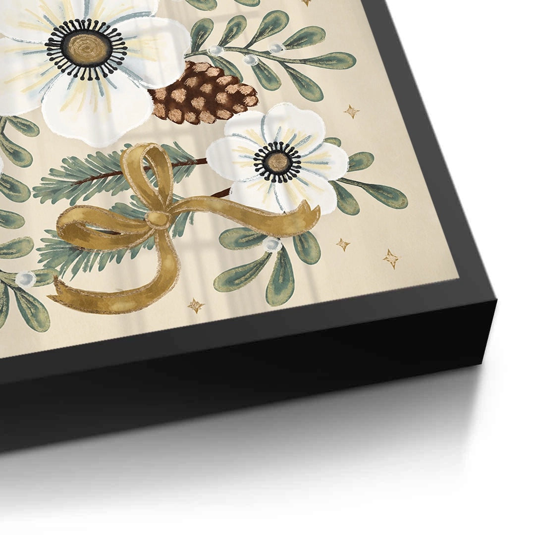 Celebrate the magic of the holidays with Christmas Floral from Jasmine Art’s Bohemian series. This enchanting print features elegant white anemones, rustic pinecones, and lush evergreen sprigs, all tied together with shimmering golden ribbons and delicate stars. Its sophisticated palette of forest green, gold, and cream brings a cozy yet modern festive spirit to your home. Finished with our signature premium vertical texture, this print provides exceptional tactile depth and a high-end gallery finish. A perfect seasonal centerpiece for a luxury living room, a festive dining area, or a welcoming hallway in Dubai.