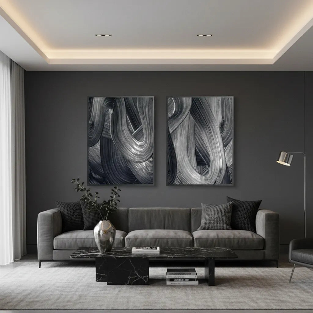 This dynamic set is characterized by its heavily textured, metallic chrome strokes. It’s a bold, contemporary statement that lends itself perfectly to industrial or hyper-modern décor, providing a unique sense of reflection and kinetic energy.