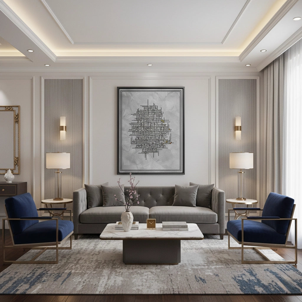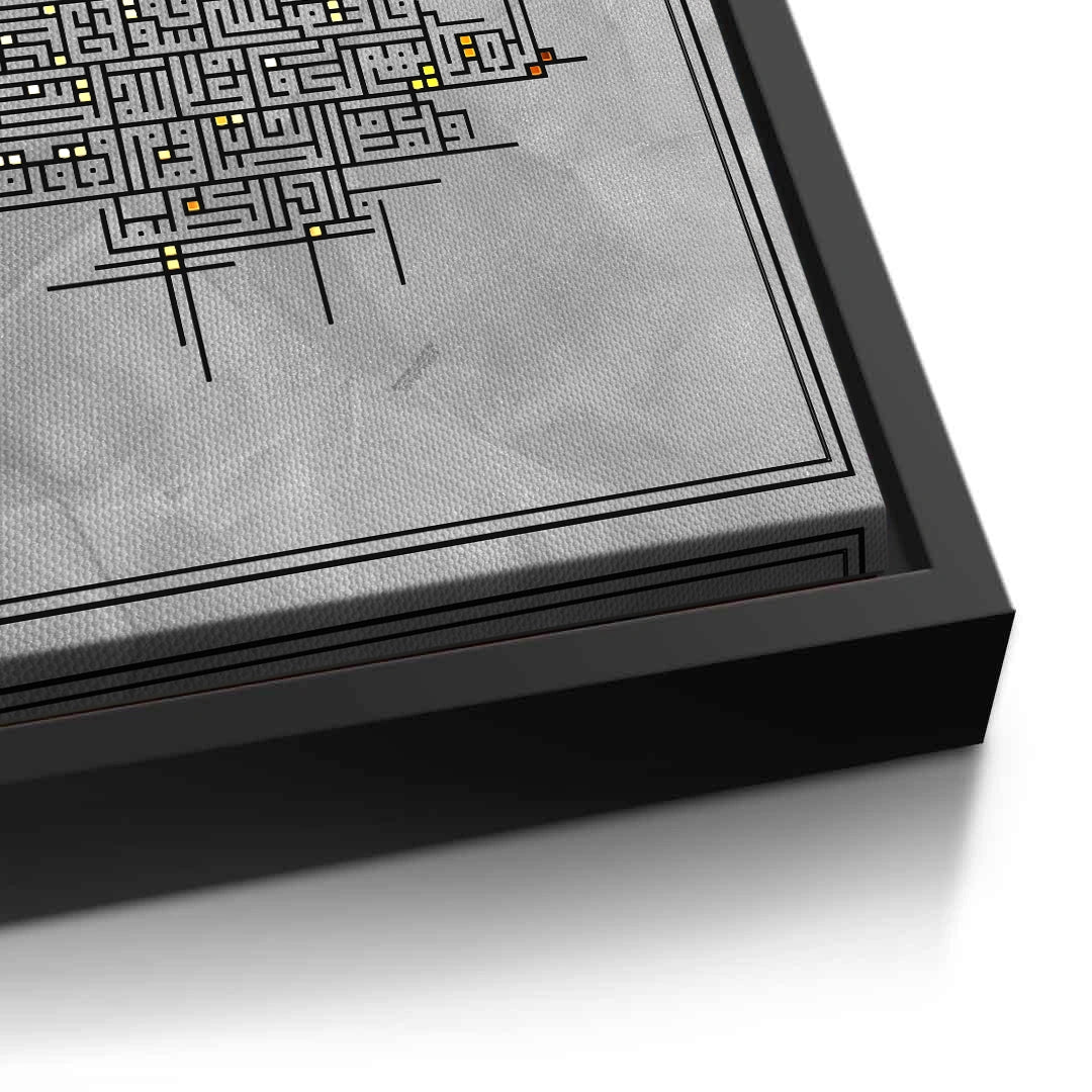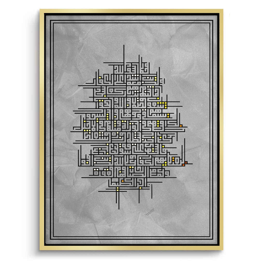 Redefine your space with the Contemporary Kufic Calligraphy from Jasmine Art’s Arabic Calligraphy collection. This avant-garde piece showcases sacred scripts in a sophisticated Square Kufic geometry, set against a rich, textured grey backdrop. Subtle accents of vibrant yellow and orange bring a modern, digital-age energy to the traditional script. Finished with our signature premium vertical texture, this print offers exceptional tactile depth and a high-end gallery finish. A perfect intellectual accent for a modern office, a minimalist study, or a contemporary lounge in Dubai.