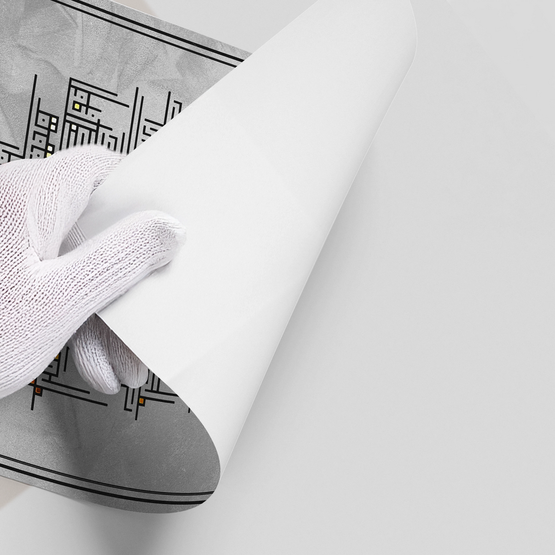 Redefine your space with the Contemporary Kufic Calligraphy from Jasmine Art’s Arabic Calligraphy collection. This avant-garde piece showcases sacred scripts in a sophisticated Square Kufic geometry, set against a rich, textured grey backdrop. Subtle accents of vibrant yellow and orange bring a modern, digital-age energy to the traditional script. Finished with our signature premium vertical texture, this print offers exceptional tactile depth and a high-end gallery finish. A perfect intellectual accent for a modern office, a minimalist study, or a contemporary lounge in Dubai.