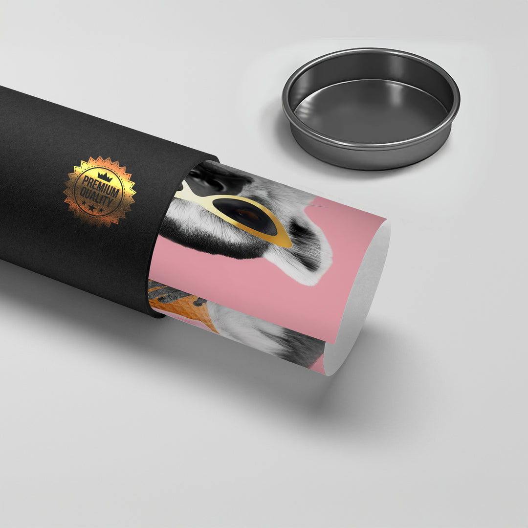 The effortlessly chic Cool Lemur with Ice Cream print is a striking piece of Pop Art luxury for any modern child's room or trendy office. This canvas features a black and white lemur adorned with sleek metallic gold sunglasses, holding a vibrant pink ice cream cone. It's a humorous, high-fashion statement that adds bold color and unique personality to your contemporary Dubai interior.