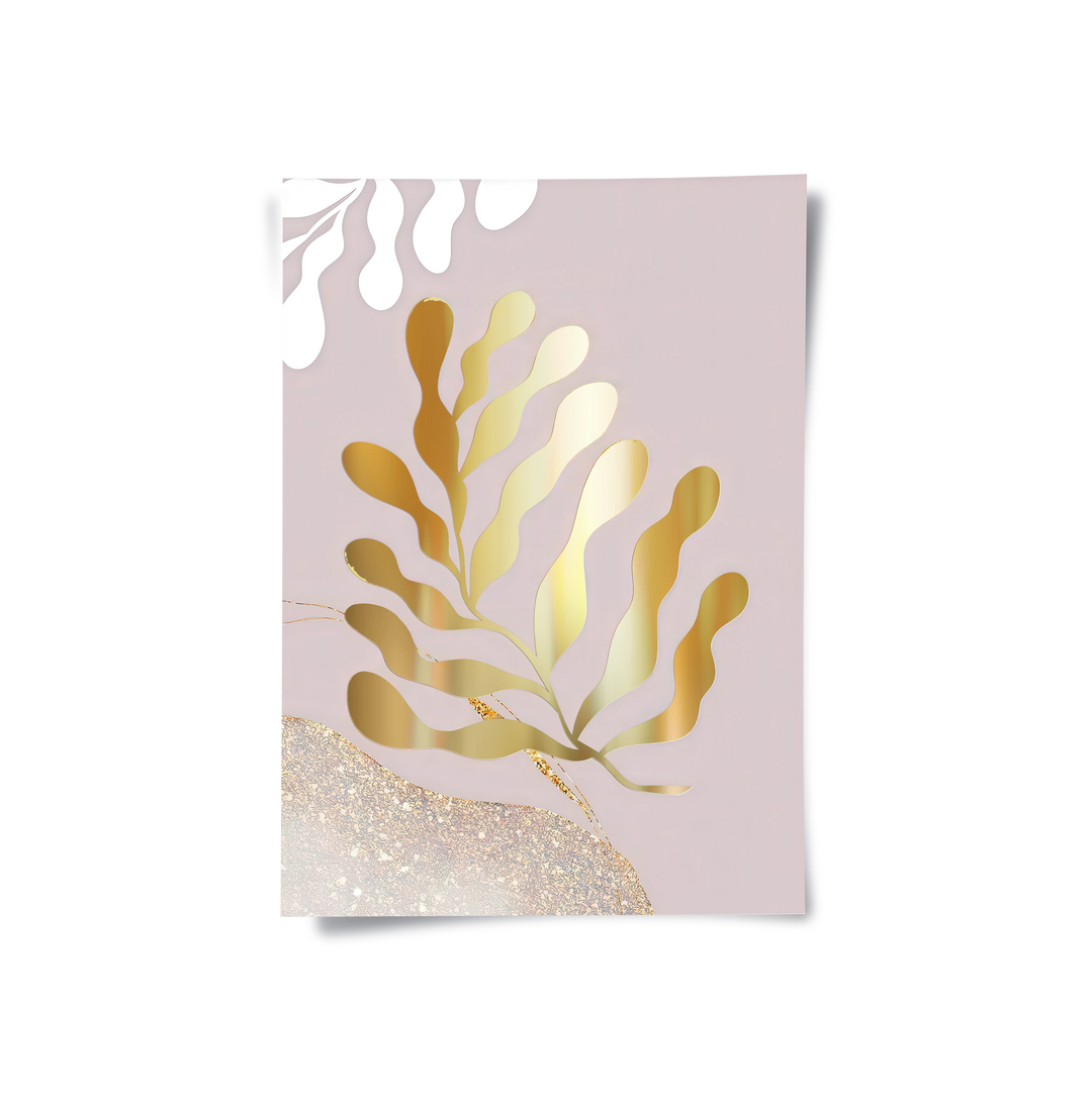 The incredibly stylish Dusty Rose & Gold Celestial Set of 2 brings a trendy, glamorous touch to contemporary decor. This luxurious diptych features flowing abstract leaves rendered in both smooth metallic gold foil and sparkling gold glitter. Set against a romantic dusty rose background, these pieces incorporate a subtle celestial theme, making them a breathtaking and sophisticated accent for a luxury dressing room or master suite in Dubai.