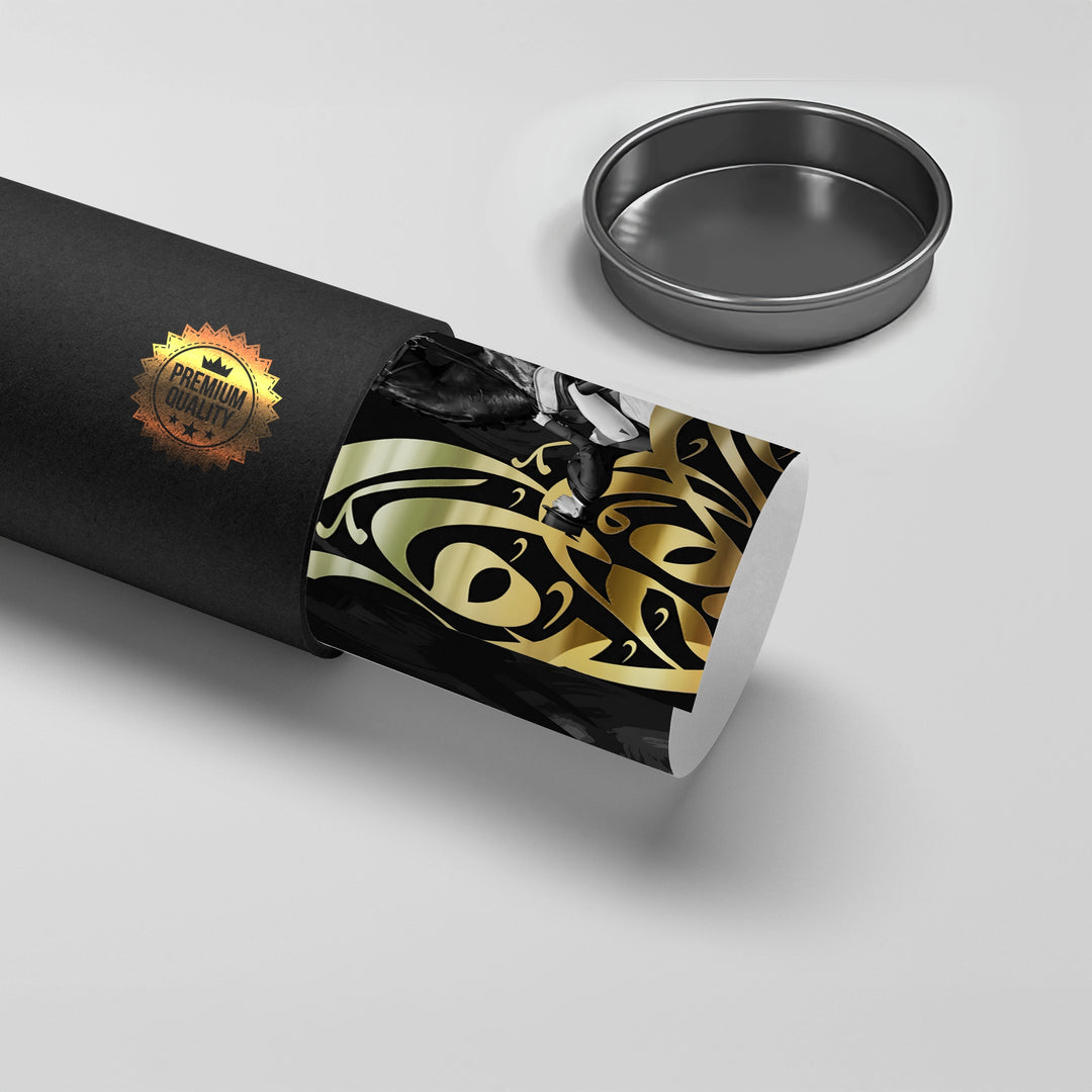 The sophisticated Equestrian Dressage - Gold Calligraphy print merges the elegance of dressage with the luxury of Arabic script. This dramatic piece features a classically rendered rider and horse in a dressage pose, set against a turbulent, deep black textured background. Dominating the upper section are bold, sweeping strokes of metallic gold Arabic calligraphy, adding a powerful cultural and luxurious dimension. This print is a perfect statement for equestrian enthusiasts or anyone looking for a bold, dynamic, and opulent accent in a home or office in Dubai.