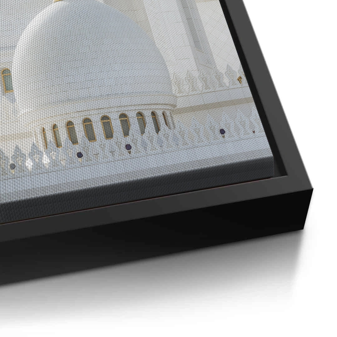 Elevate your home’s aura with Ethereal Elegance, a stunning tribute to the Sheikh Zayed Grand Mosque. This artistic close-up captures the magnificent white marble domes and their radiant golden finials bathed in soft, natural light. The minimalist focus on the mosque’s upper architecture highlights the purity and intricate craftsmanship of this global landmark. Finished with our signature premium vertical texture, this print offers a high-end tactile finish that brings a sense of serenity and luxury to any space. A perfect centerpiece for a contemporary living room, a peaceful bedroom, or a high-end office in Dubai.