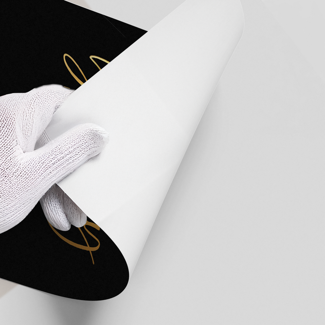 The sophisticated Find the Beauty in Every Day - Gold Script Typography print is an elegant, mindful reminder to appreciate life's details. The central message is highlighted by the word "beauty" rendered in large, luxurious metallic gold flowing script. The surrounding text, "Find the" and "IN EVERY DAY," provides context in a clean gold sans-serif font. This striking gold typography is set against a deep black, textured pinstripe canvas, creating a dramatic, high-contrast, and upscale finish. Ideal for adding a luxurious, reflective, and sophisticated accent to a bedroom, living space, or office in Dubai.
