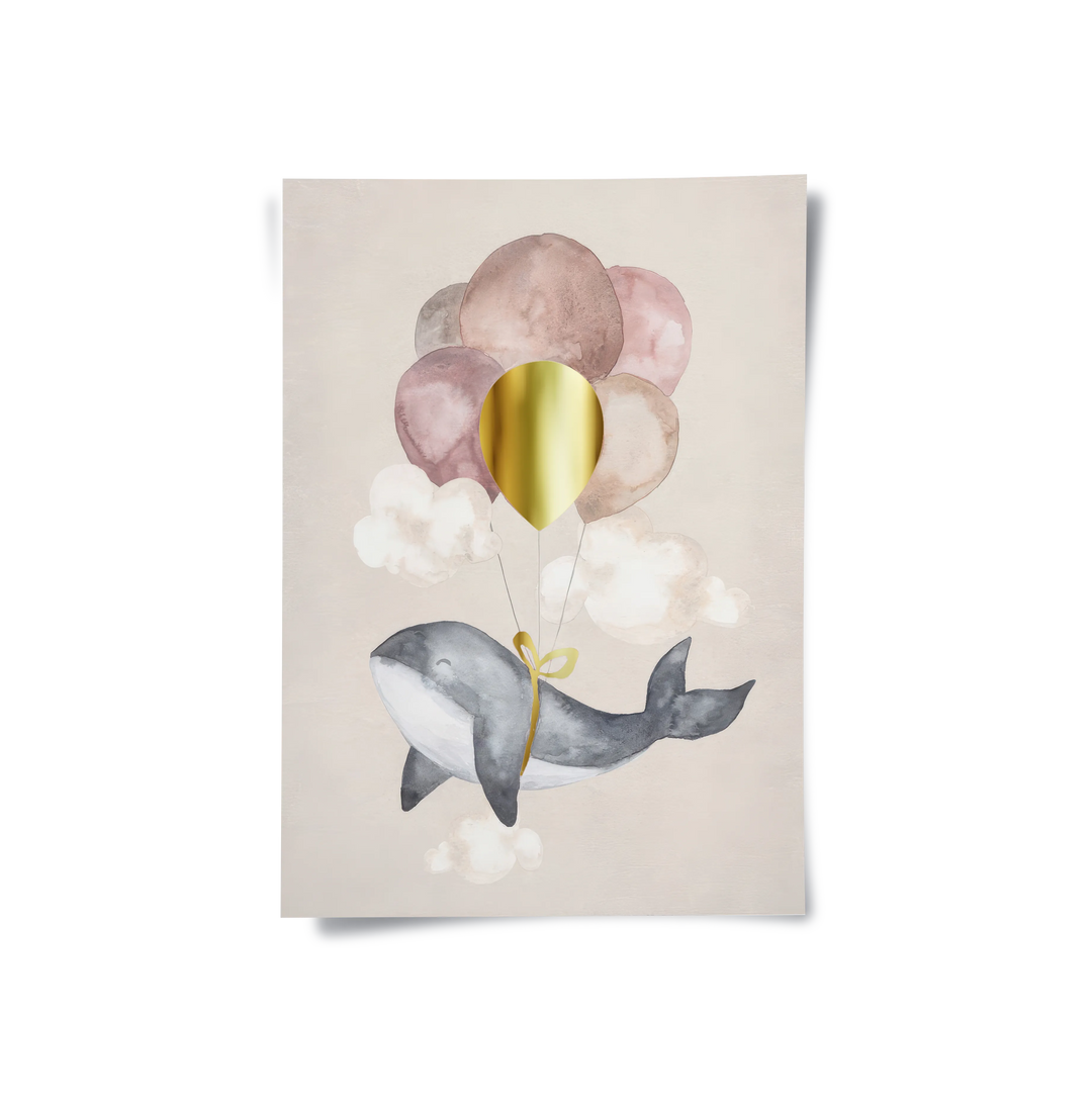 The imaginative and fantastical Flying Whale print inspires limitless creativity and deep-sea dreams. This unique piece is perfect for an adventurous boy's room or a nautical-themed nursery in the UAE.