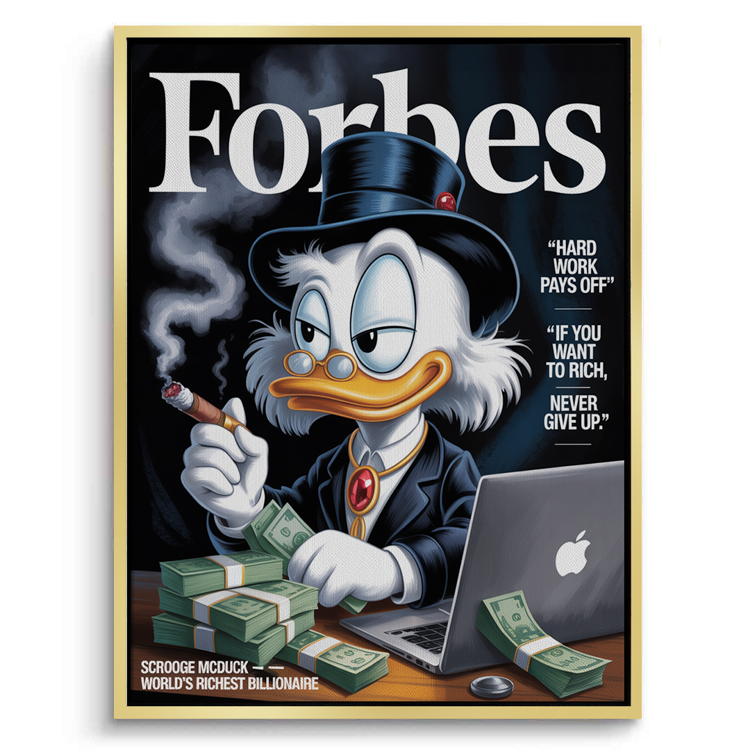 Forbes Scrooge McDuck” is a playful and bold artwork that combines pop culture with a nod to wealth and ambition. Featuring the iconic Scrooge McDuck in a Forbes-inspired theme, this piece celebrates success, entrepreneurship, and the pursuit of dreams with a fun and creative twist. Perfect for modern interiors, offices, or any space that appreciates humor, inspiration, and a touch of nostalgia.