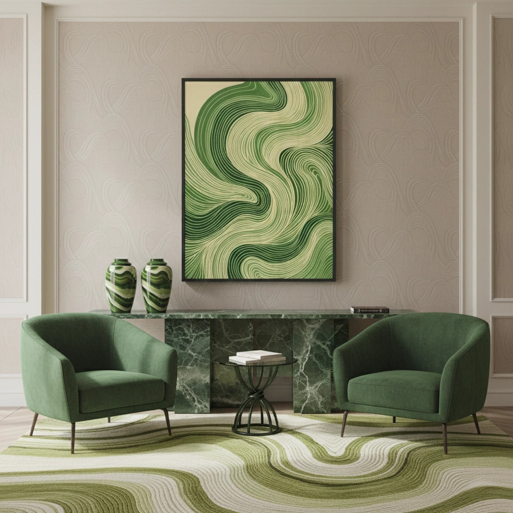 Connect with the rhythm of nature through Forest Meanders from Jasmine Art. This abstract masterpiece features flowing topographical lines in shades of emerald and forest green, mimicking the serene movement of a woodland stream. The hypnotic design brings a sense of calm and infinite growth to any modern interior. Finished with our signature premium fine-ribbed texture, this print offers exceptional tactile depth and a high-end gallery finish. A tranquil statement piece for a minimalist living room, a zen bedroom, or a luxury spa in Dubai.