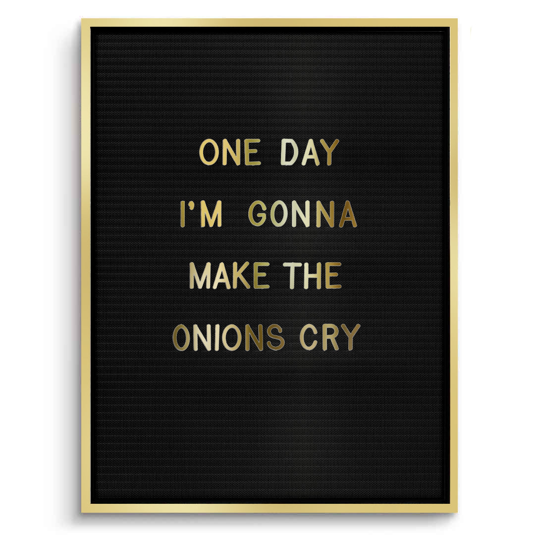 Add a dash of humor to your culinary space with the Funny Chef typography print from Jasmine Art. Featuring the witty quote, "One day I'm gonna make the onions cry," this piece is designed with stylish golden-hued lettering against a deep, textured black canvas. It’s the perfect conversation starter for food lovers and home chefs alike. Finished with our signature premium vertical texture, this print offers a sophisticated tactile depth that elevates your kitchen decor to gallery standards. Ideal for modern kitchens, dining areas, or bistro-style cafes in Dubai.