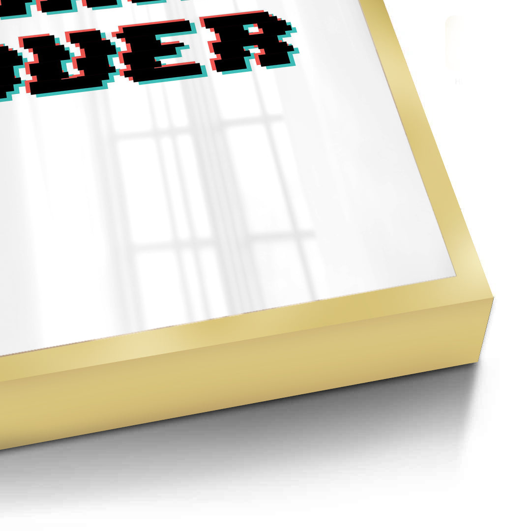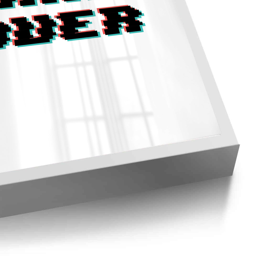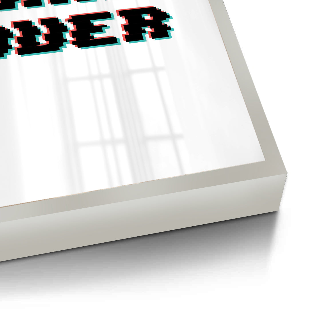 Level up your space with the Game Over typography print from Jasmine Art. Featuring a classic 8-bit pixelated font with a stylish cyan and red glitch effect, this piece perfectly captures the essence of retro arcade nostalgia. The bold black lettering stands out against a clean white background, creating a striking contemporary look. Finished with our signature premium vertical texture, this print offers a sophisticated tactile finish that elevates digital culture to high-end wall art. A must-have for gaming rooms, creative studios, or tech-inspired offices in Dubai.