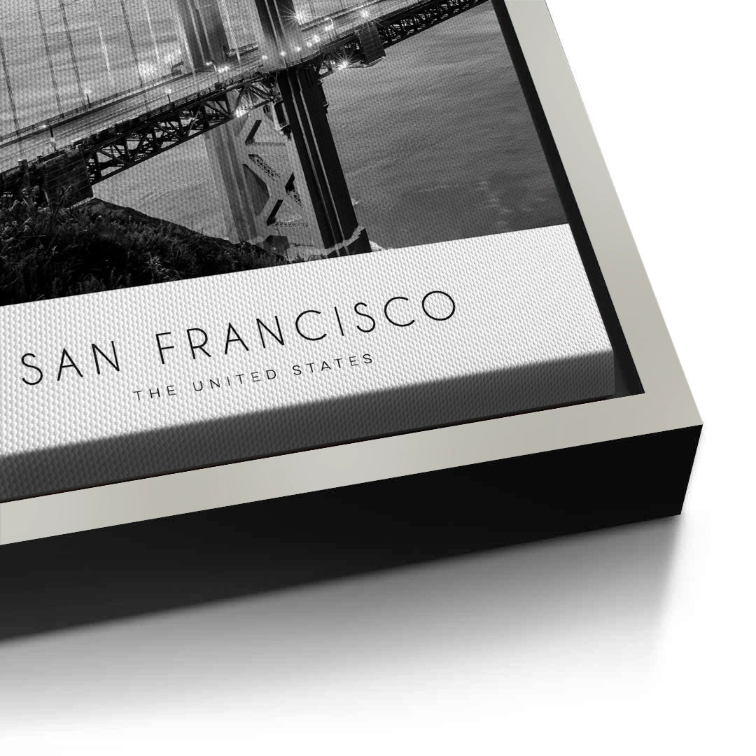 Bring a piece of American engineering history into your home with the Gate Bridge San Francisco art print. This striking monochrome travel poster captures the majestic Golden Gate Bridge tower and its sweeping cables against the city skyline. The classic black and white photography offers a timeless, sophisticated aesthetic that fits perfectly in any modern interior. Finished with our signature premium vertical texture, this print delivers a high-end tactile finish and gallery-grade depth. It is a must-have for travel enthusiasts and a perfect addition to a contemporary living room or executive office in Dubai.