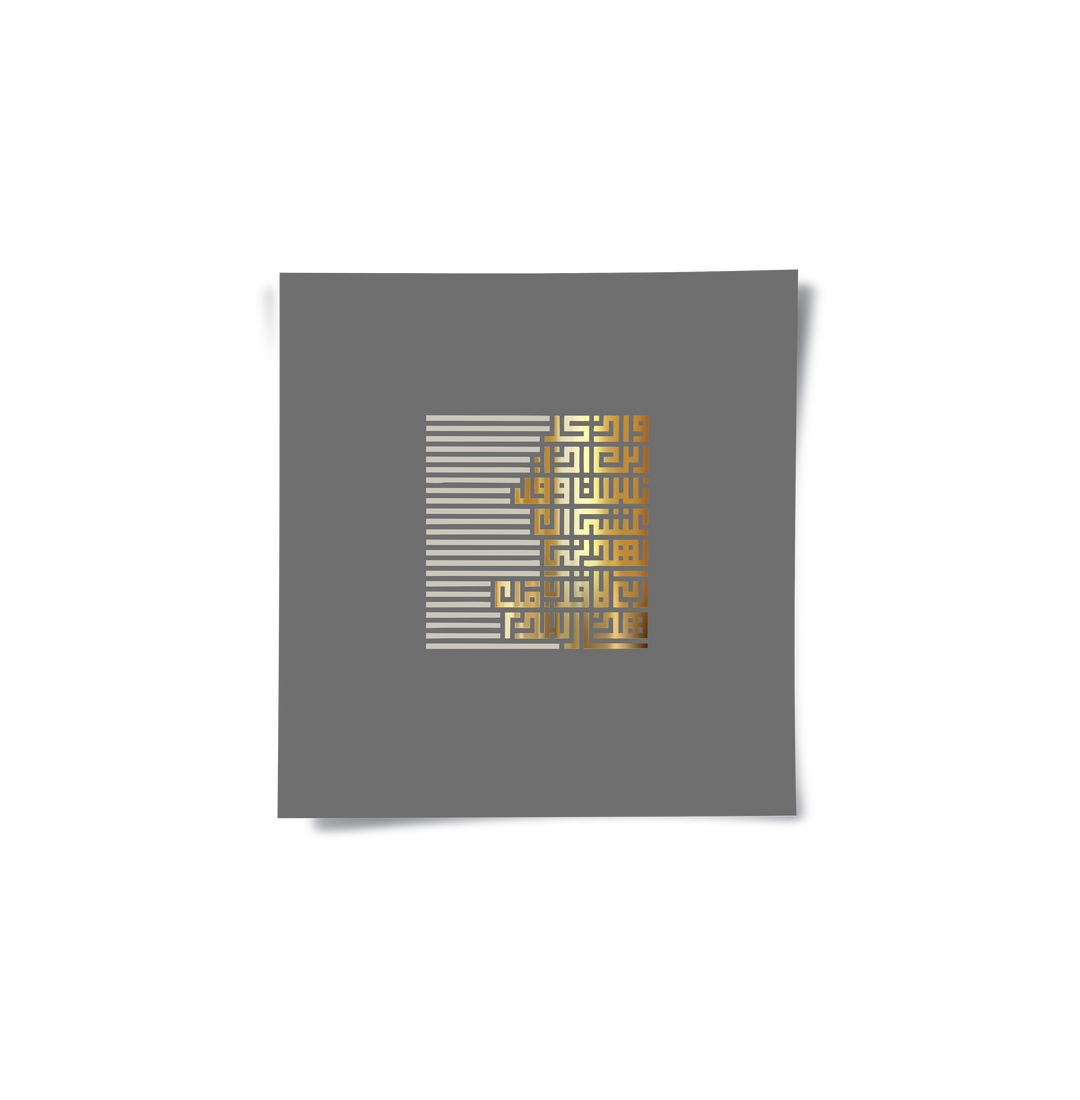 Embrace the harmony of tradition and technology with the Geometric Kufic Calligraphy from Jasmine Art’s Arabic Calligraphy collection. This innovative piece features sacred script emerging from a series of precise linear patterns, rendered in a radiant metallic gold finish. The sophisticated slate grey backdrop provides a calm, contemporary stage for this spiritual geometry. Finished with our signature premium fine-dot texture, this print offers exceptional tactile depth and a high-end gallery finish. An ideal intellectual accent for a modern office, a minimalist study, or a luxury apartment in Dubai.