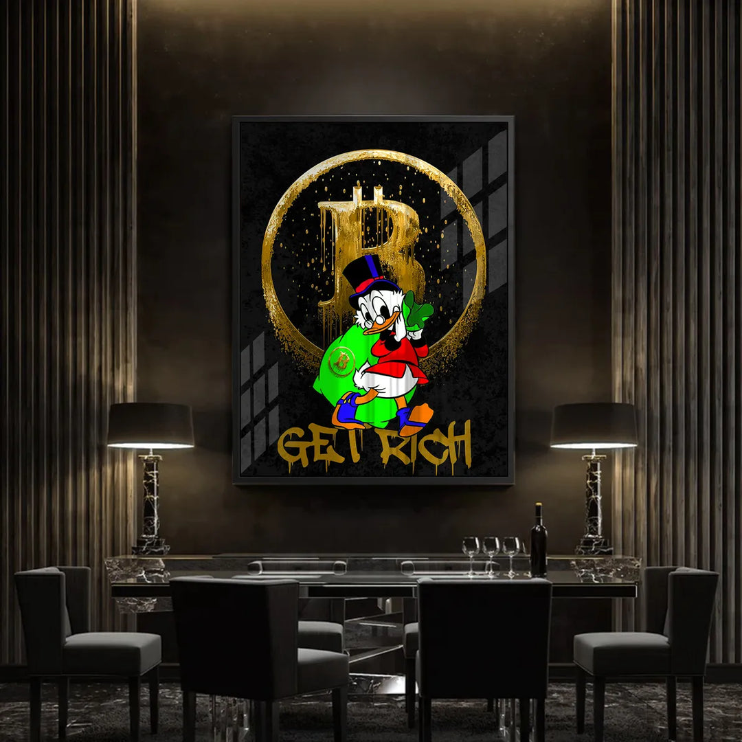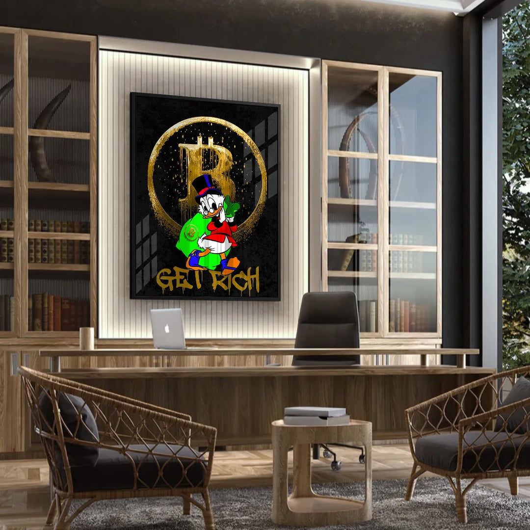 Get Rich is a bold visual statement that speaks to ambition, hustle, and the drive to succeed. With striking contrasts and modern design elements, this piece channels the energy of wealth-building, risk-taking, and self-made success. Ideal for entrepreneurs, dreamers, and go-getters, it brings a fearless, motivational vibe to any space aiming high.