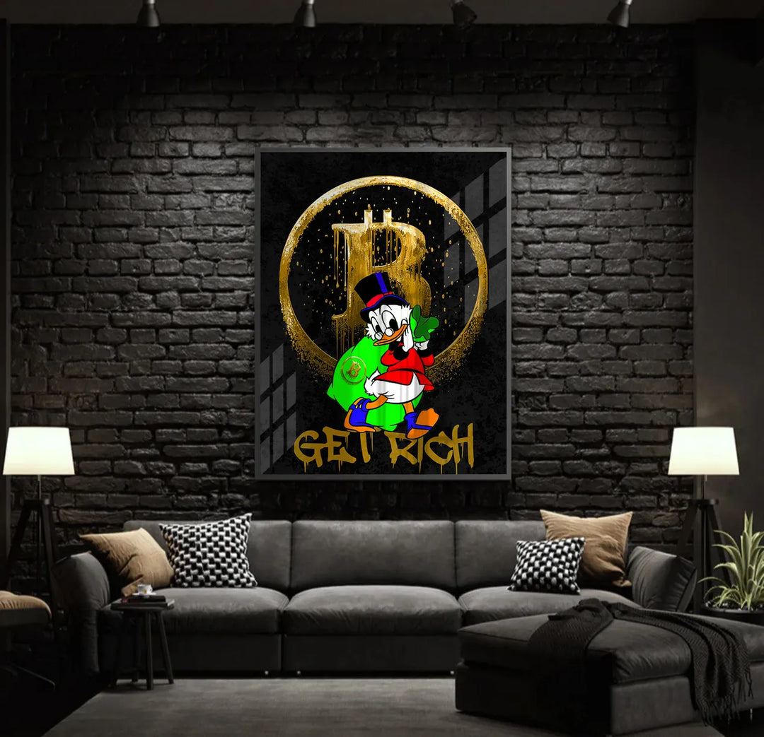 Get Rich is a bold visual statement that speaks to ambition, hustle, and the drive to succeed. With striking contrasts and modern design elements, this piece channels the energy of wealth-building, risk-taking, and self-made success. Ideal for entrepreneurs, dreamers, and go-getters, it brings a fearless, motivational vibe to any space aiming high.