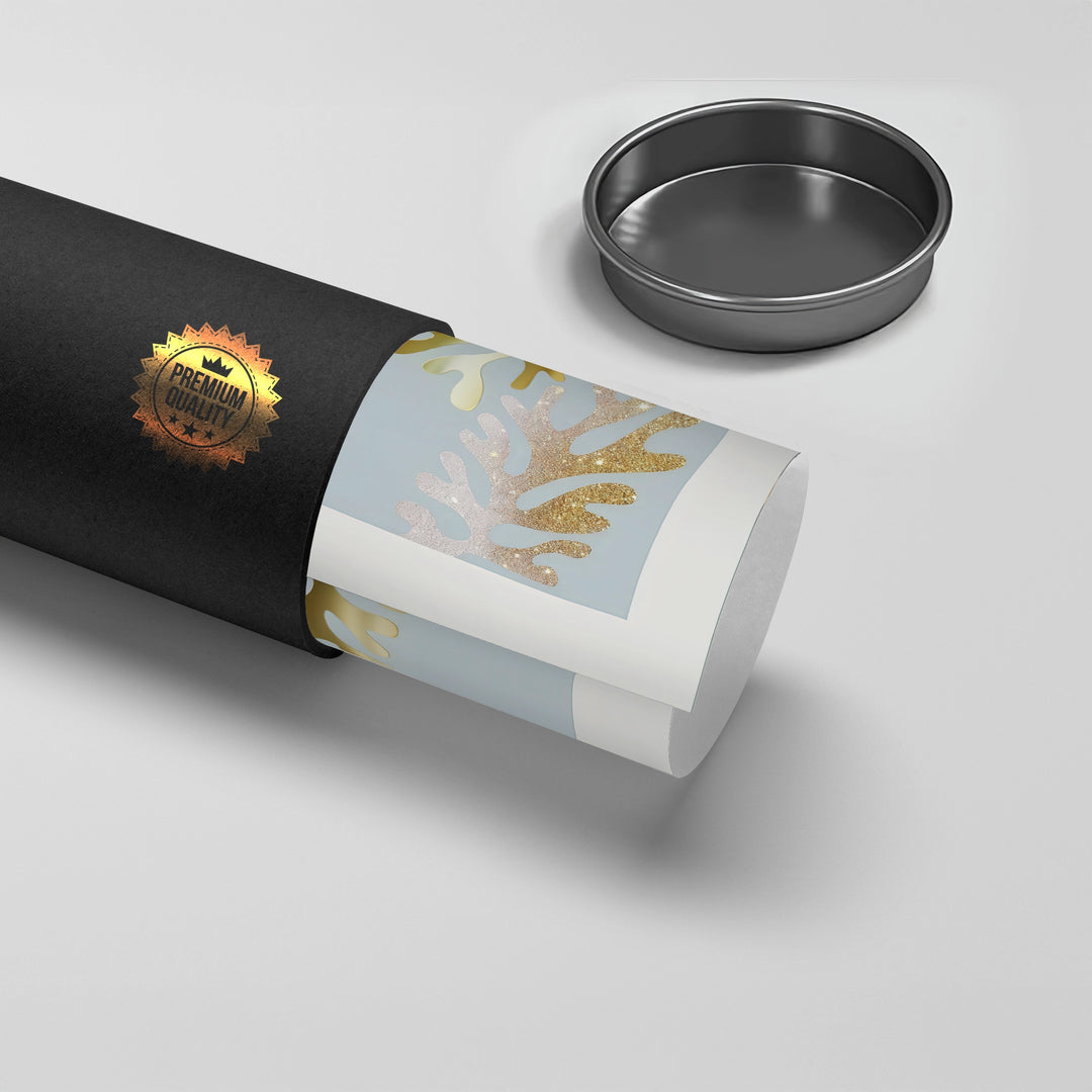 The dazzling Gold Glitter Abstract Leaves Set of 2 offers a modern, luxurious take on botanical forms. This pair of artworks features abstract, stylized leaf shapes rendered in shimmering metallic gold foil and sparkling gold glitter. Set against a calm pale blue/grey background with a crisp white border, the contrasting textures and hues create a sophisticated focal point. This set is perfect for injecting coastal glam, modern elegance, and eye-catching luxury into a hallway, living room, or master suite in Dubai.