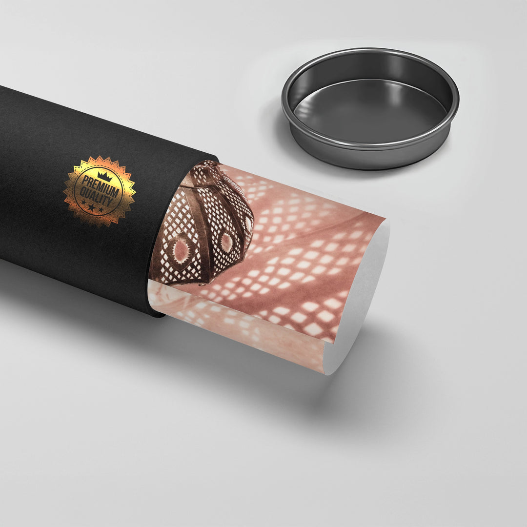 Capture the magical glow of the Middle East with the Golden Hour Arabesque art print. This captivating piece highlights an intricately designed traditional lantern, casting a mesmerizing pattern of geometric shadows across a soft, curved ceiling. The warm palette of rose gold and dusty terracotta evokes the serene beauty of a desert sunset. Finished with our signature premium vertical texture, this print offers a luxurious tactile depth. It is a stunning addition to a cozy lounge, a sophisticated bedroom, or any space seeking a touch of Arabian elegance in Dubai.