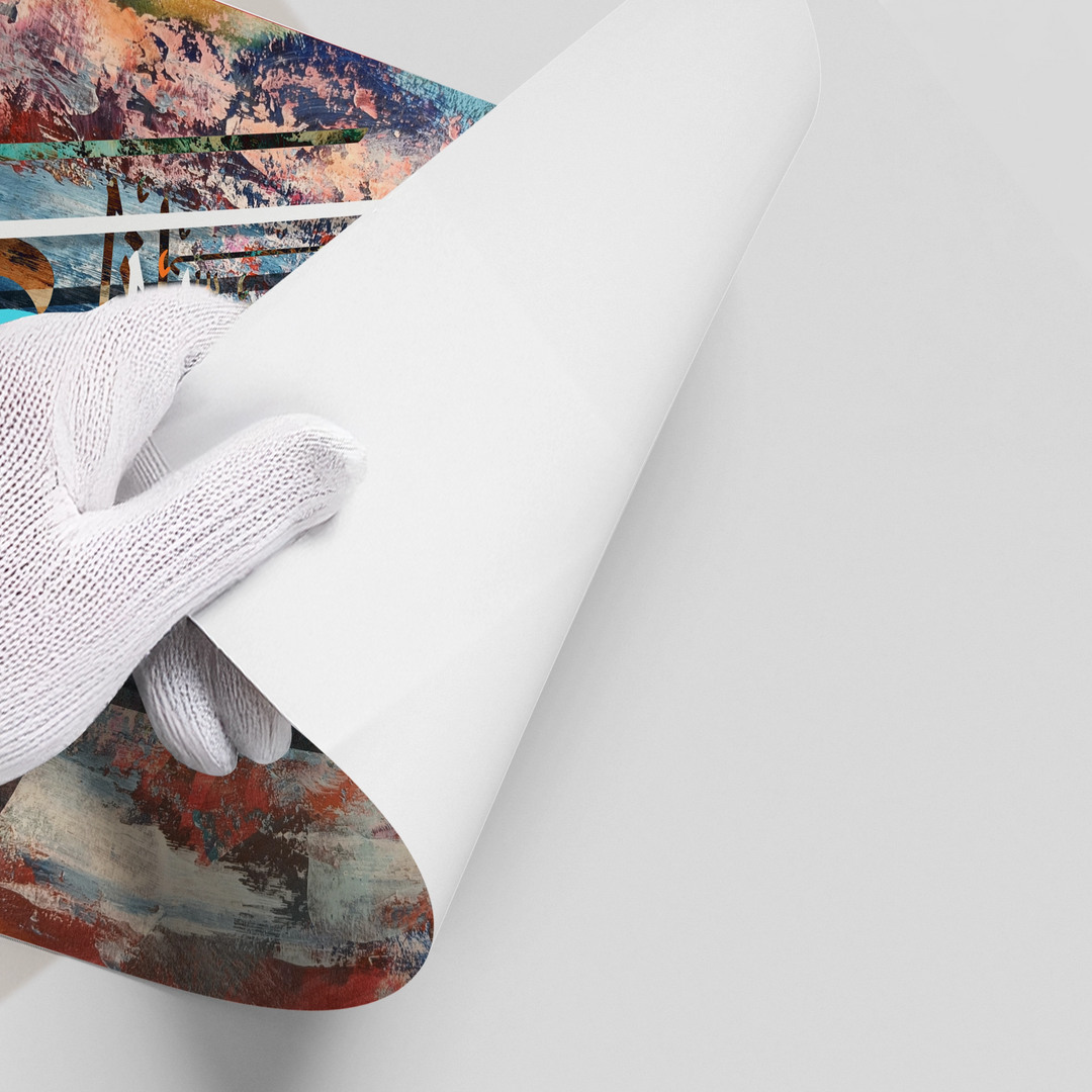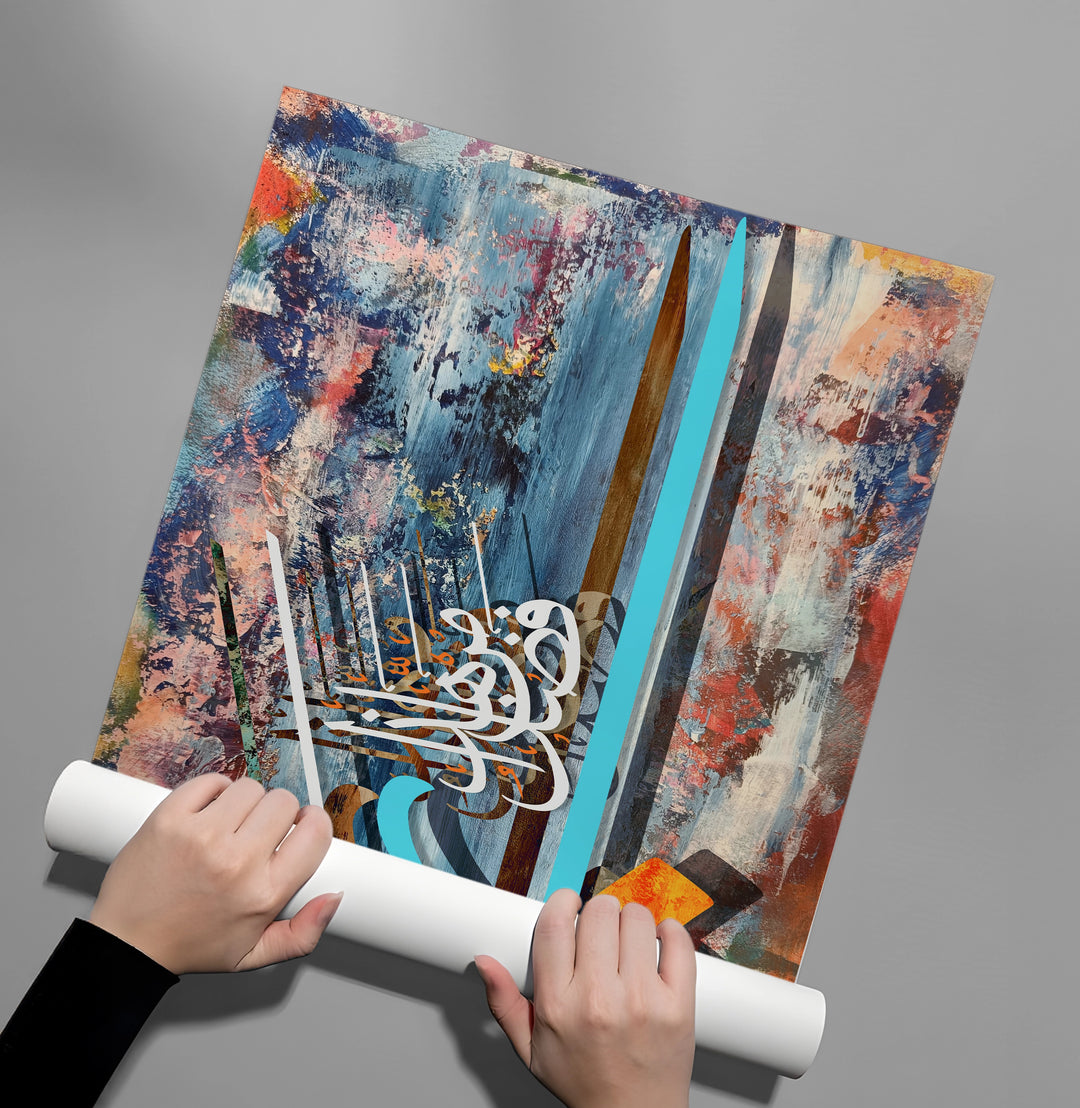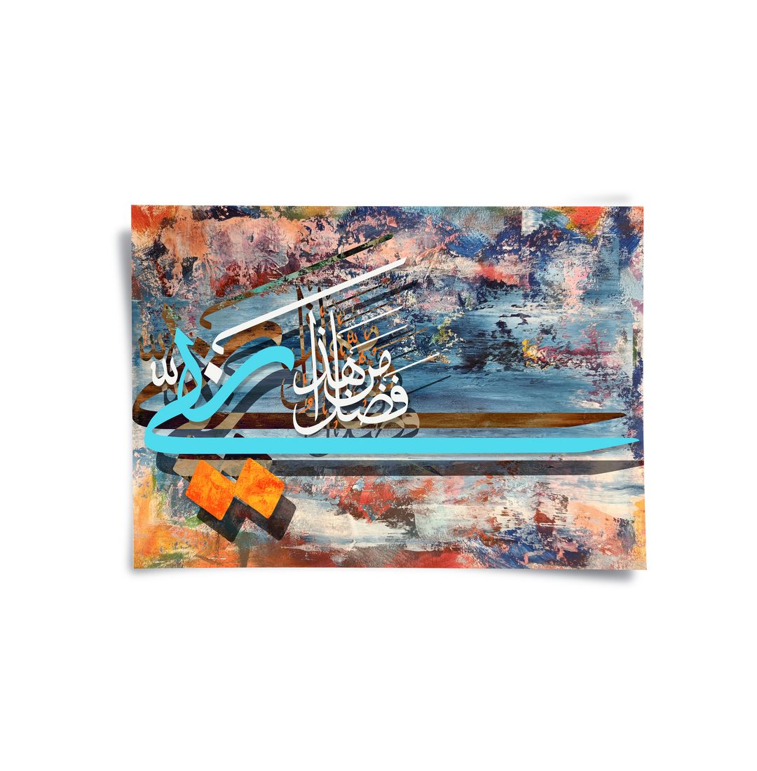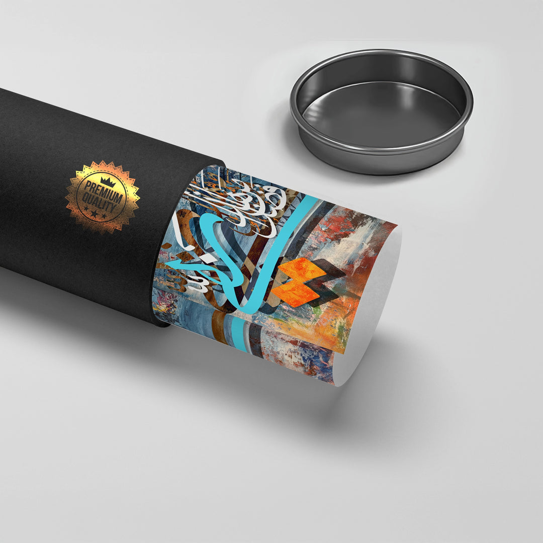 Celebrate the blessings of life with the Haza Min Fadli Rabbi from Jasmine Art’s Arabic Calligraphy collection. This dynamic artwork features the sacred phrase "This is by the Grace of my Lord" in a bold, contemporary script layered over a multi-colored abstract background. Its fusion of traditional gratitude and modern expressionist style makes it a powerful focal point for any artistic space. Finished with our signature premium texture, this print offers exceptional tactile depth and a high-end gallery finish. A perfect statement piece for a creative office, a modern living room, or a stylish Majlis in Dubai.