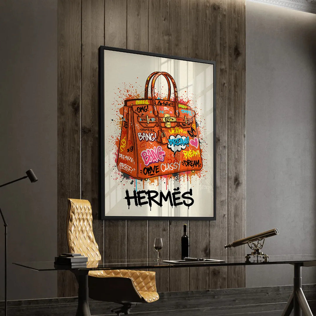 Hermès Reimagined is a bold artistic tribute to the timeless elegance of the Hermès legacy — reinterpreted through a modern, expressive lens. Blending high-fashion iconography with contemporary textures, this piece captures the essence of luxury, craftsmanship, and innovation. Perfect for fashion-forward interiors, it makes a statement of style, heritage, and creative reinvention.