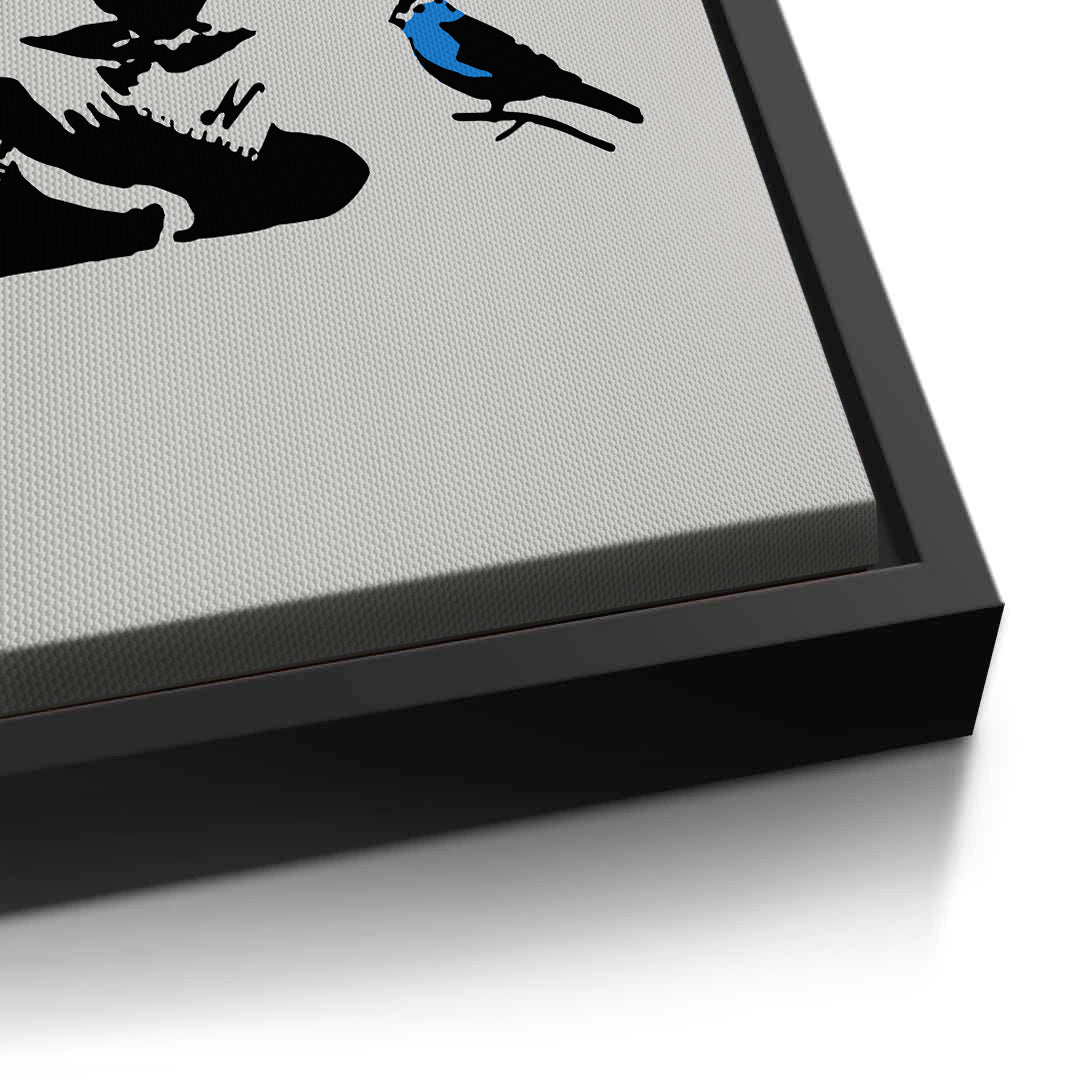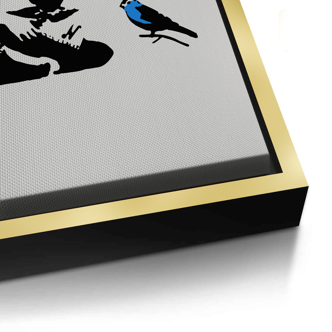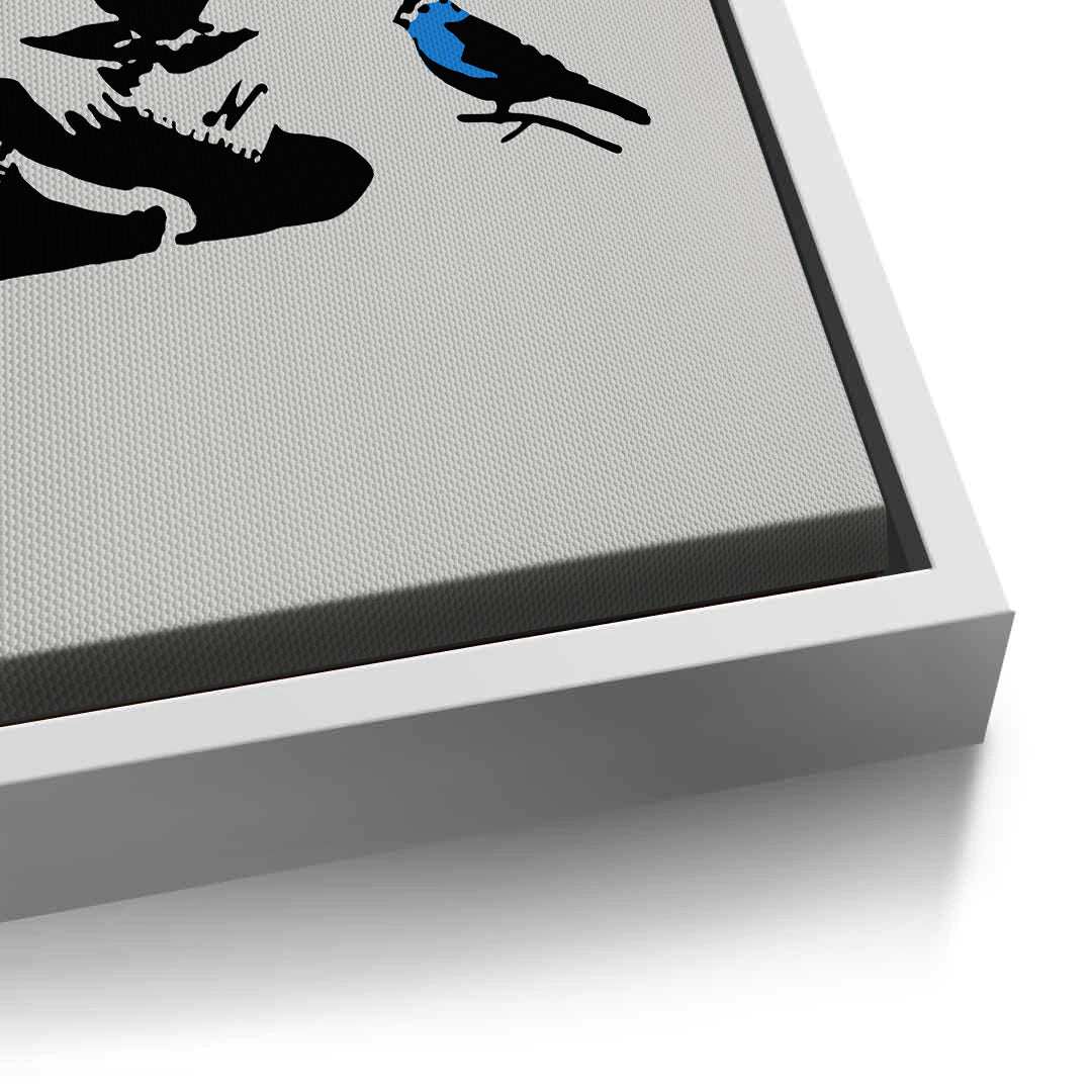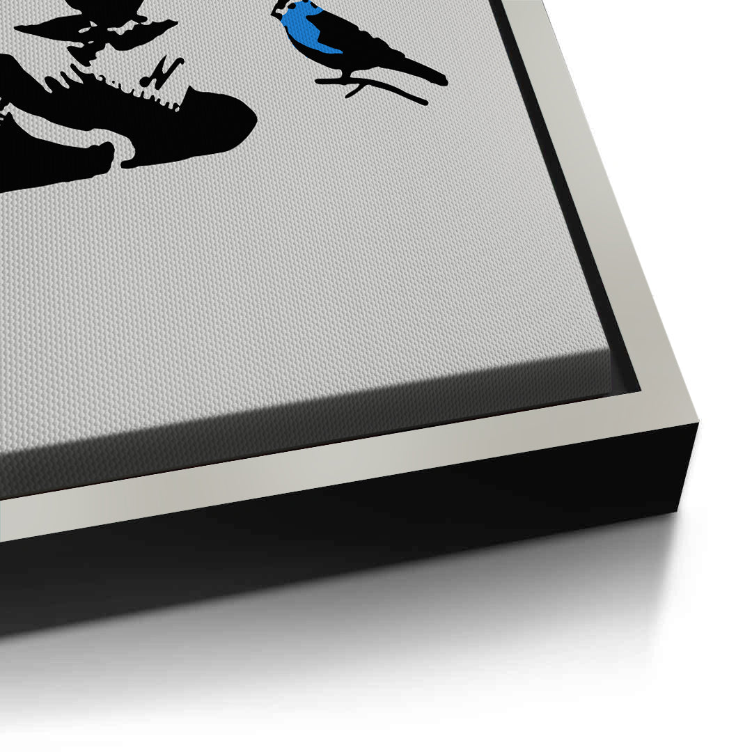Invite a sense of wonder into your home with Hope in Flight from Jasmine Art’s Banksy-inspired series. This delicate piece captures a monochromatic stencil of a young girl holding an iconic red balloon while admiring a small blue bird. The minimalist design, punctuated by vibrant pops of red and blue, creates a serene and thought-provoking atmosphere. Finished with our signature premium vertical texture, this print offers a sophisticated tactile finish that elevates street-style symbolism into a luxury gallery masterpiece. An ideal soulful addition for a minimalist nursery, a quiet reading nook, or a modern bedroom in Dubai.