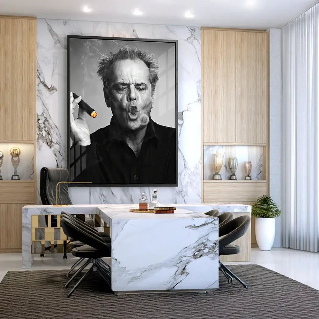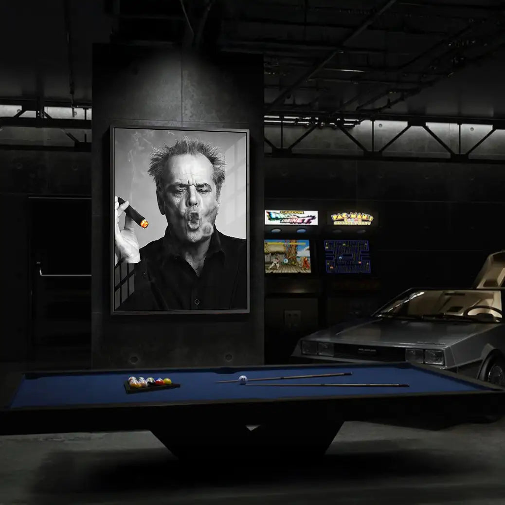 Bold, unapologetic, and oozing charisma — Jack Nicholson Cigar captures the raw energy and rebellious charm of a true Hollywood legend. This striking portrait, with rich contrast and smoky tones, brings to life the iconic presence of Nicholson, cigar in hand, exuding attitude and timeless cool. A powerful statement piece for interiors that celebrate character, confidence, and classic film icons.