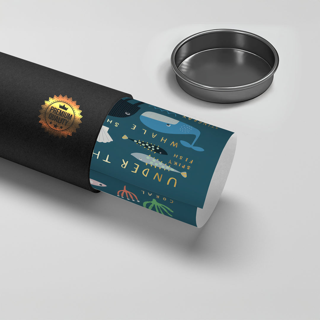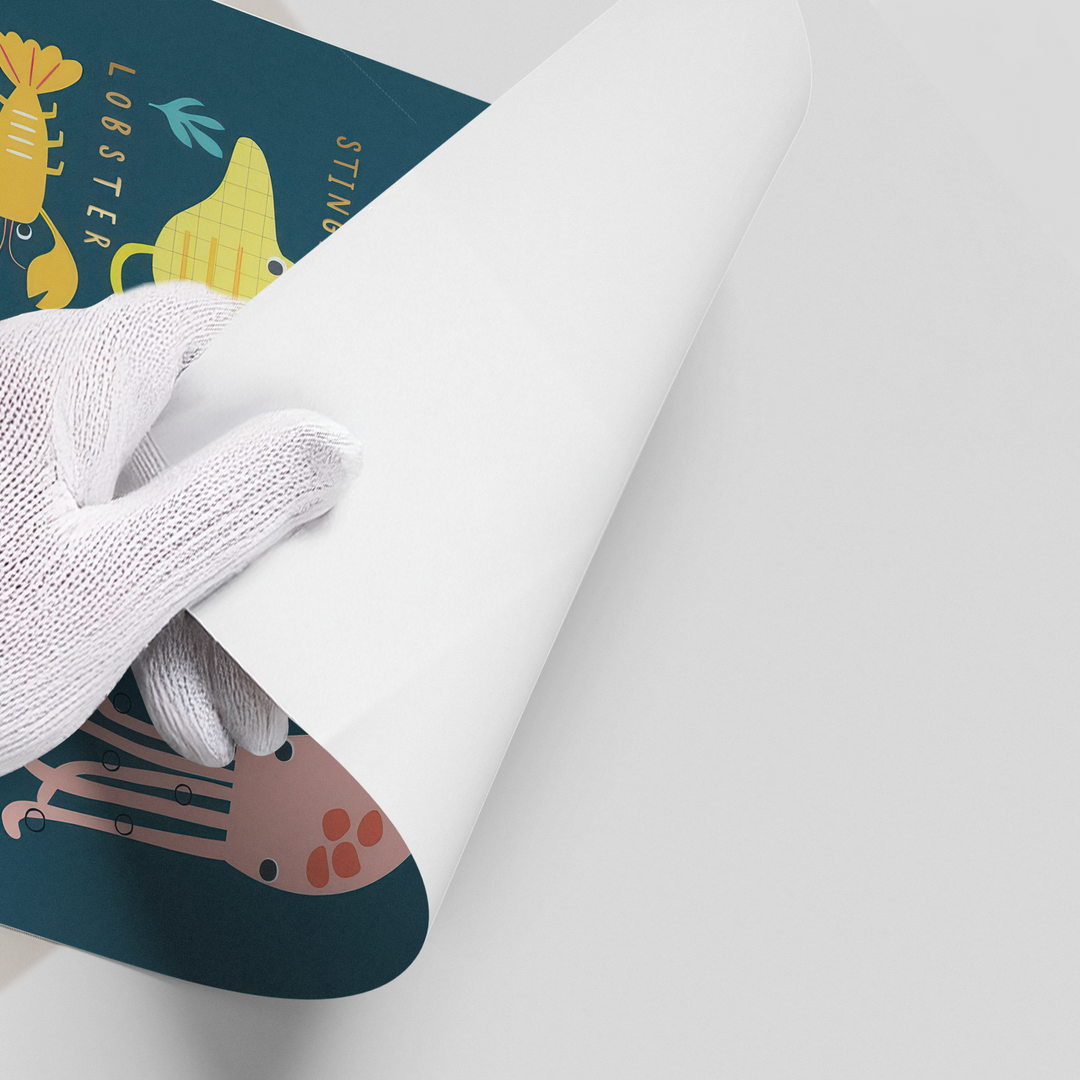 The engaging Kids Educational Sea Animals print is a vibrant and interactive addition to any child’s learning space or nursery. This canvas features a lively array of cartoon-style marine life, including a friendly whale, a cheeky crab, and a playful octopus, all set against a rich deep teal background. Each animal is clearly labelled with text highlighted in shimmering metallic gold foil, making learning fun and luxurious. This piece is perfect for stimulating young minds and bringing educational charm with a touch of sparkle to a Dubai kids' room.