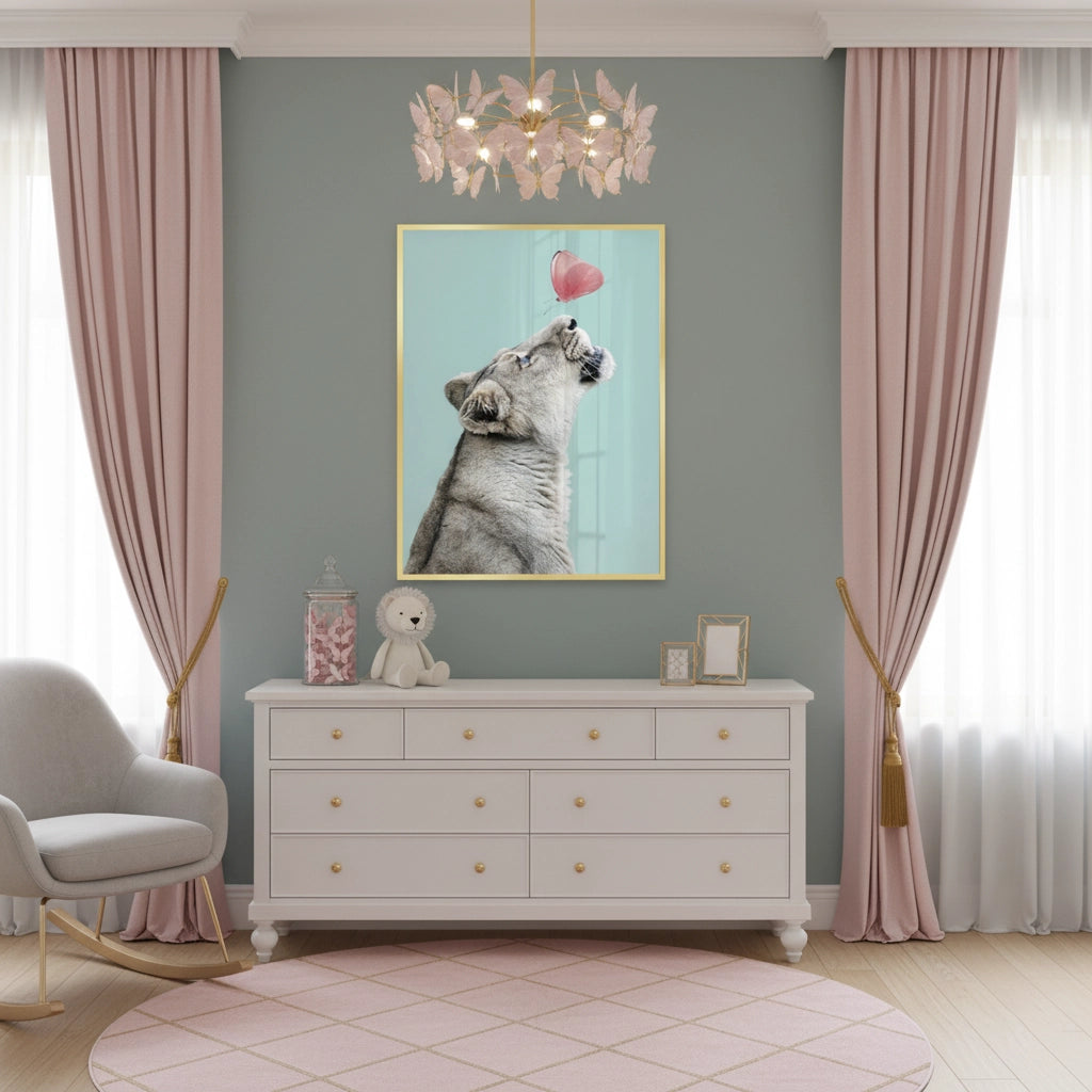 An imaginative and adorable print that combines the fierce charm of a lion cub with the delicate beauty of a butterfly. The Lion Cub Butterfly is perfect for stimulating creativity and adding a touch of stylish safari whimsy to a child's bedroom in the UAE.