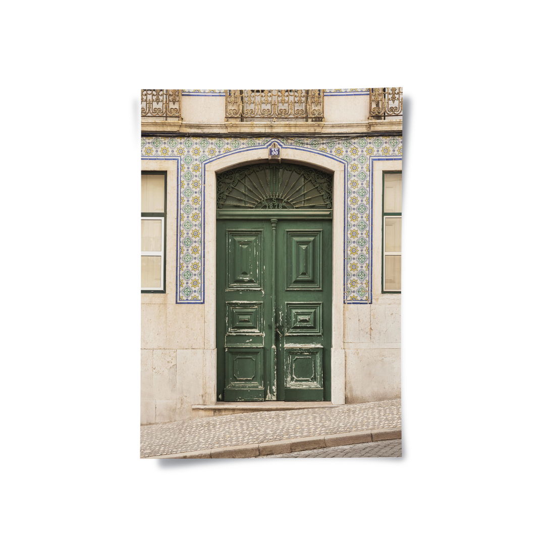 Capture the timeless soul of Portugal with the Lisbon Heritage art print. This exquisite piece showcases a weathered sage-green door framed by intricate Azulejo tiles and a classic sunburst iron grill. The composition, featuring a glimpse of Lisbon's iconic sloping streets, brings a sense of history and European warmth to your walls. Finished with our signature premium vertical texture, this print offers a sophisticated tactile finish that highlights every historic detail. A perfect addition to a rustic kitchen, a refined study, or a Mediterranean-inspired living area in Dubai.