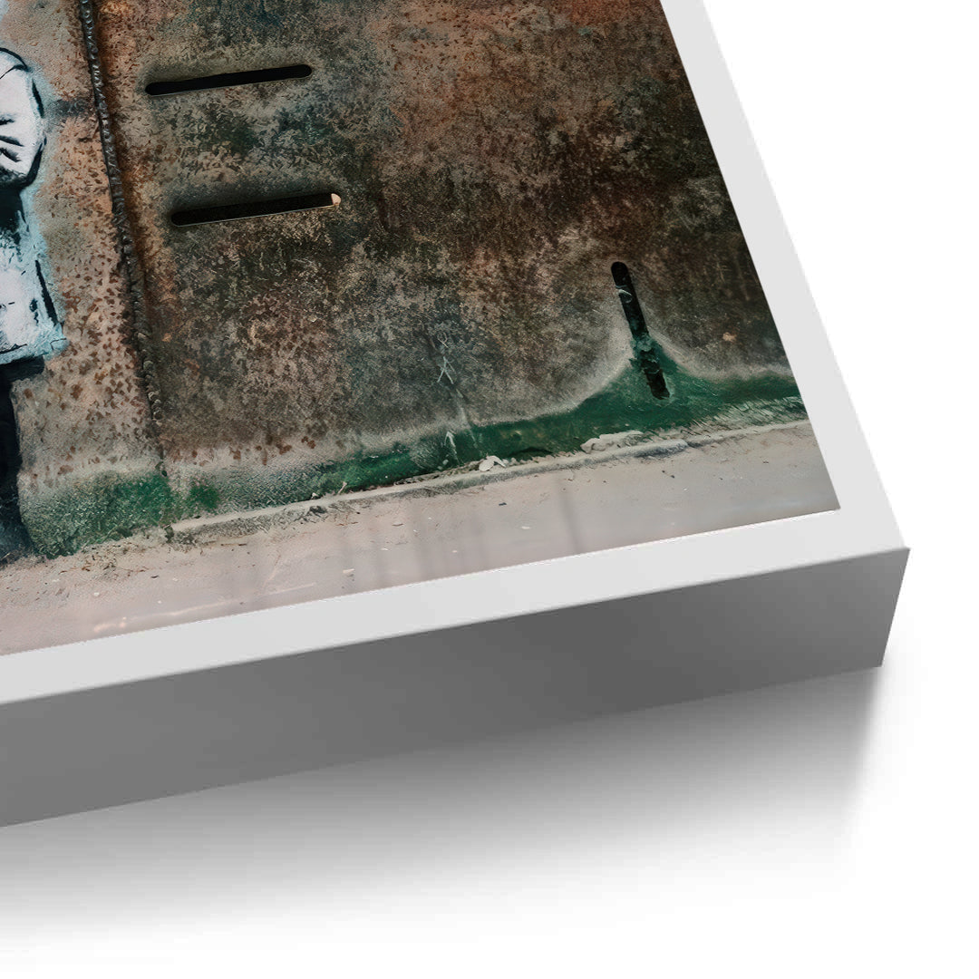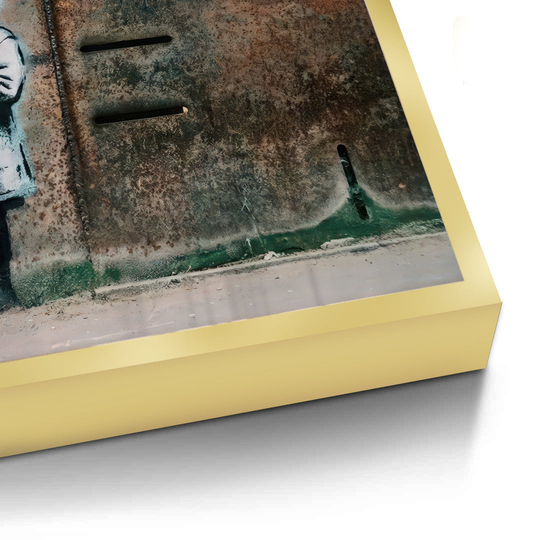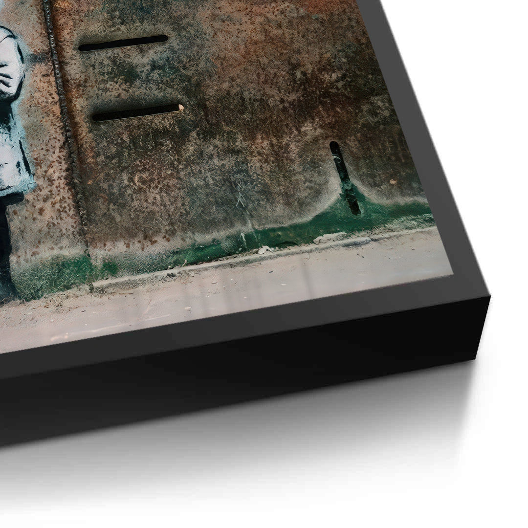 Bring a sense of hope and resilience to your walls with Little Girl with Flower from Jasmine Art’s Banksy series. This moving street-art piece features a young girl holding a single red flower against a backdrop of weathered, industrial texture. The blue dripping heart symbol adds a touch of modern urban poetry to this powerful composition. Finished with our signature premium vertical texture, this print offers exceptional tactile depth and a high-end gallery finish. A perfect emotive statement piece for a contemporary lounge, a creative office, or a modern bedroom in Dubai.