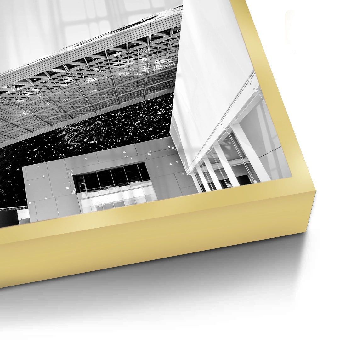 Bring a masterpiece of modern design into your home with the Louvre Abu Dhabi art print. This stunning black and white photograph captures the intricate geometric dome of the iconic museum, famous for its mesmerizing "Rain of Light" effect. The composition highlights the sophisticated interplay of light and shadow against the museum's clean, minimalist lines. Finished with our signature premium vertical texture, this print offers a high-end tactile finish that adds depth to the complex structural patterns. A perfect choice for a minimalist gallery wall, a contemporary study, or a luxury residence in Dubai.