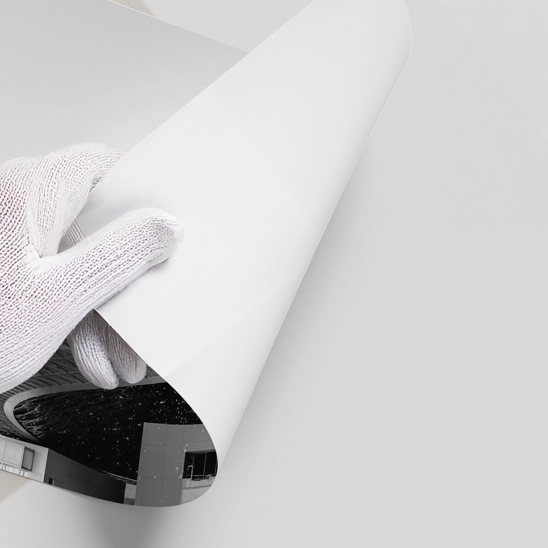 Bring a masterpiece of modern design into your home with the Louvre Abu Dhabi art print. This stunning black and white photograph captures the intricate geometric dome of the iconic museum, famous for its mesmerizing "Rain of Light" effect. The composition highlights the sophisticated interplay of light and shadow against the museum's clean, minimalist lines. Finished with our signature premium vertical texture, this print offers a high-end tactile finish that adds depth to the complex structural patterns. A perfect choice for a minimalist gallery wall, a contemporary study, or a luxury residence in Dubai.