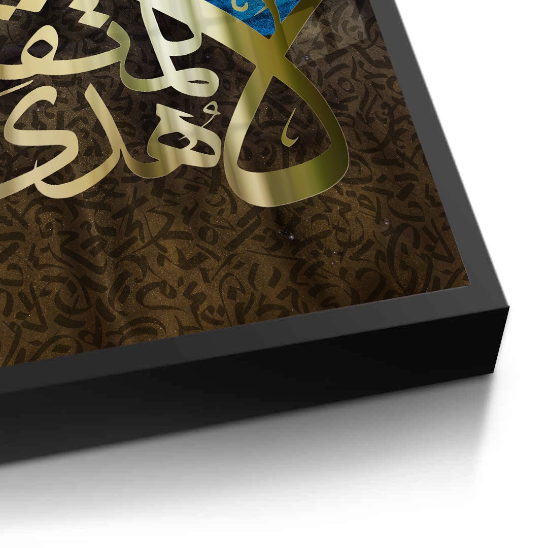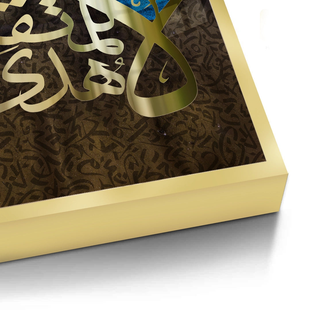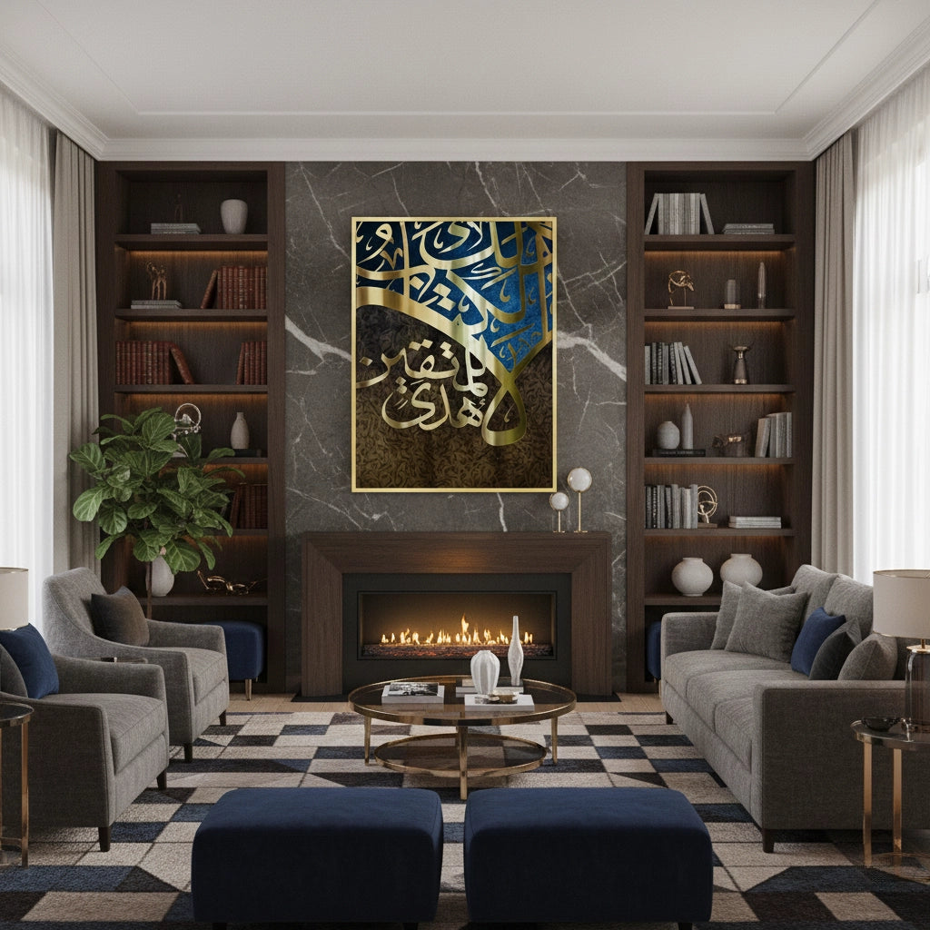 The striking Lustrous Umber - Bold Abstract print is a powerful statement piece rooted in abstract expressionism and Arabic script. The artwork is defined by its rich, earthy reddish-brown/umber background, serving as a vibrant base for the dynamic, overlapping strokes of black and bold teal/blue calligraphy. The fluid, abstract lettering creates a sense of intensity and cultural depth. Ideal for adding a bold, modern, and earthy artistic accent to a contemporary living space or gallery wall in Dubai.
