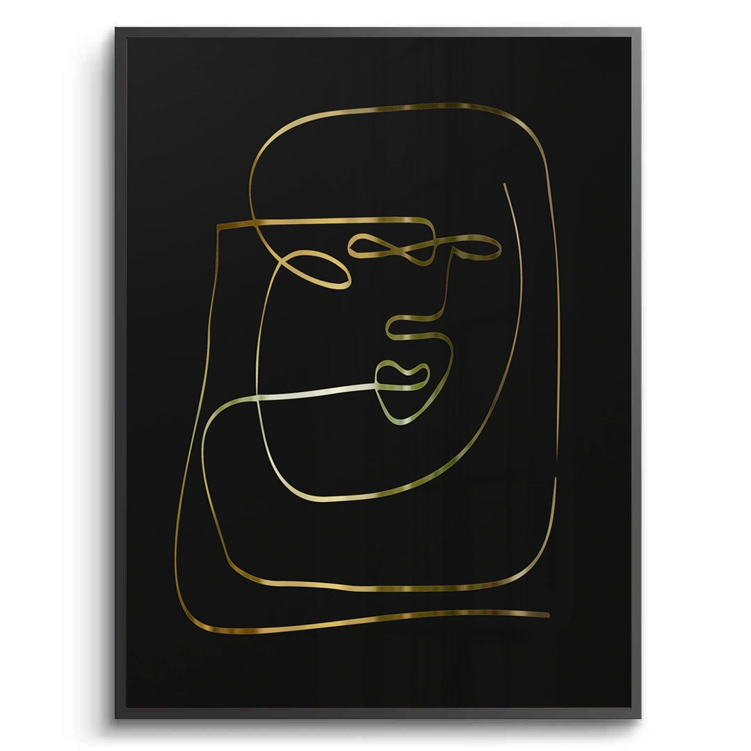Add a touch of designer elegance to your home with the Gold Line Face from Jasmine Art’s Bohemian series. This striking piece features a continuous metallic gold line forming an abstract face against a deep, textured black backdrop. The minimalist yet bold composition creates a high-contrast focal point that exudes luxury and modern style. Finished with our signature premium vertical texture, this print provides exceptional tactile depth and a high-end gallery finish. A perfect statement piece for a luxury master bedroom, a chic lounge, or a high-end office in Dubai.