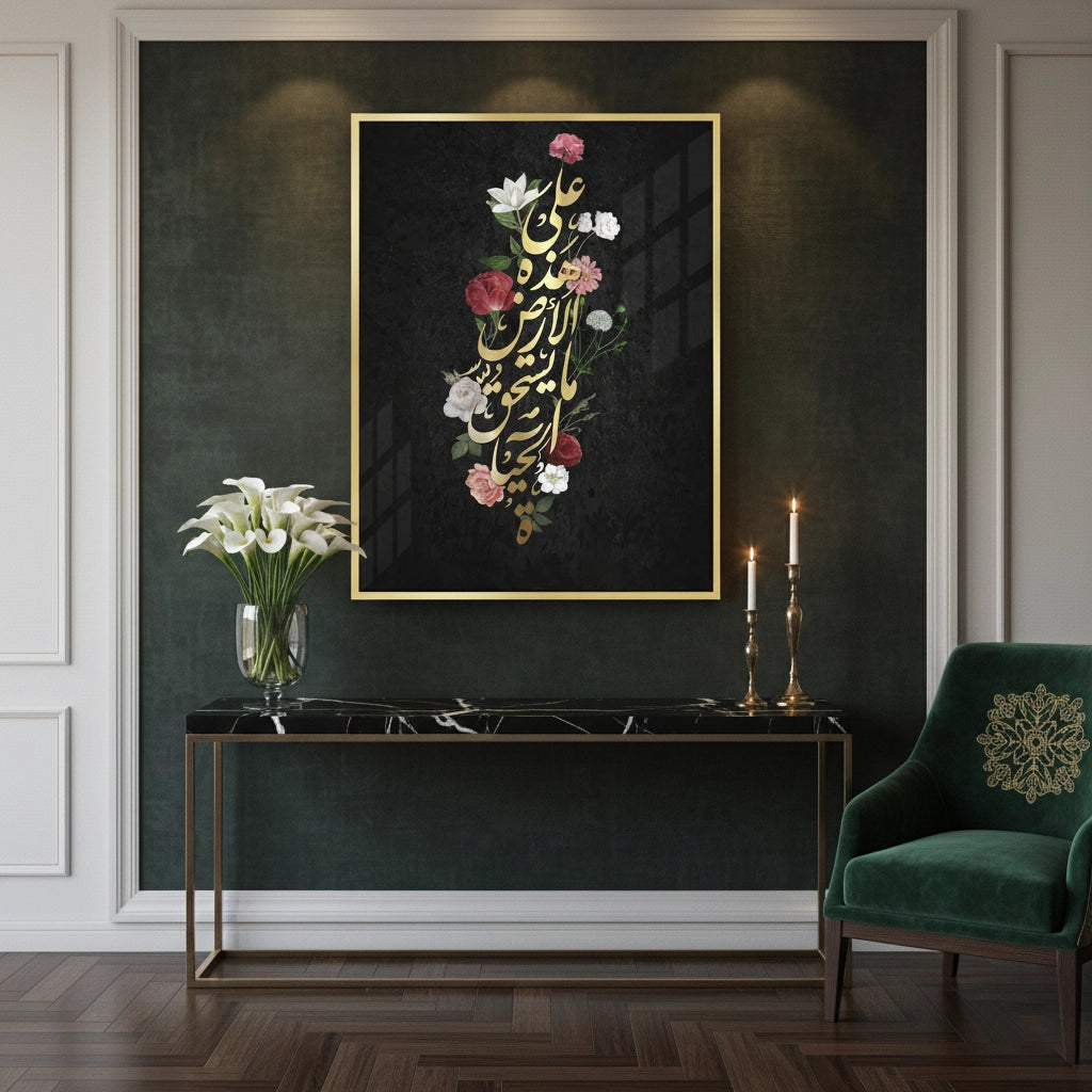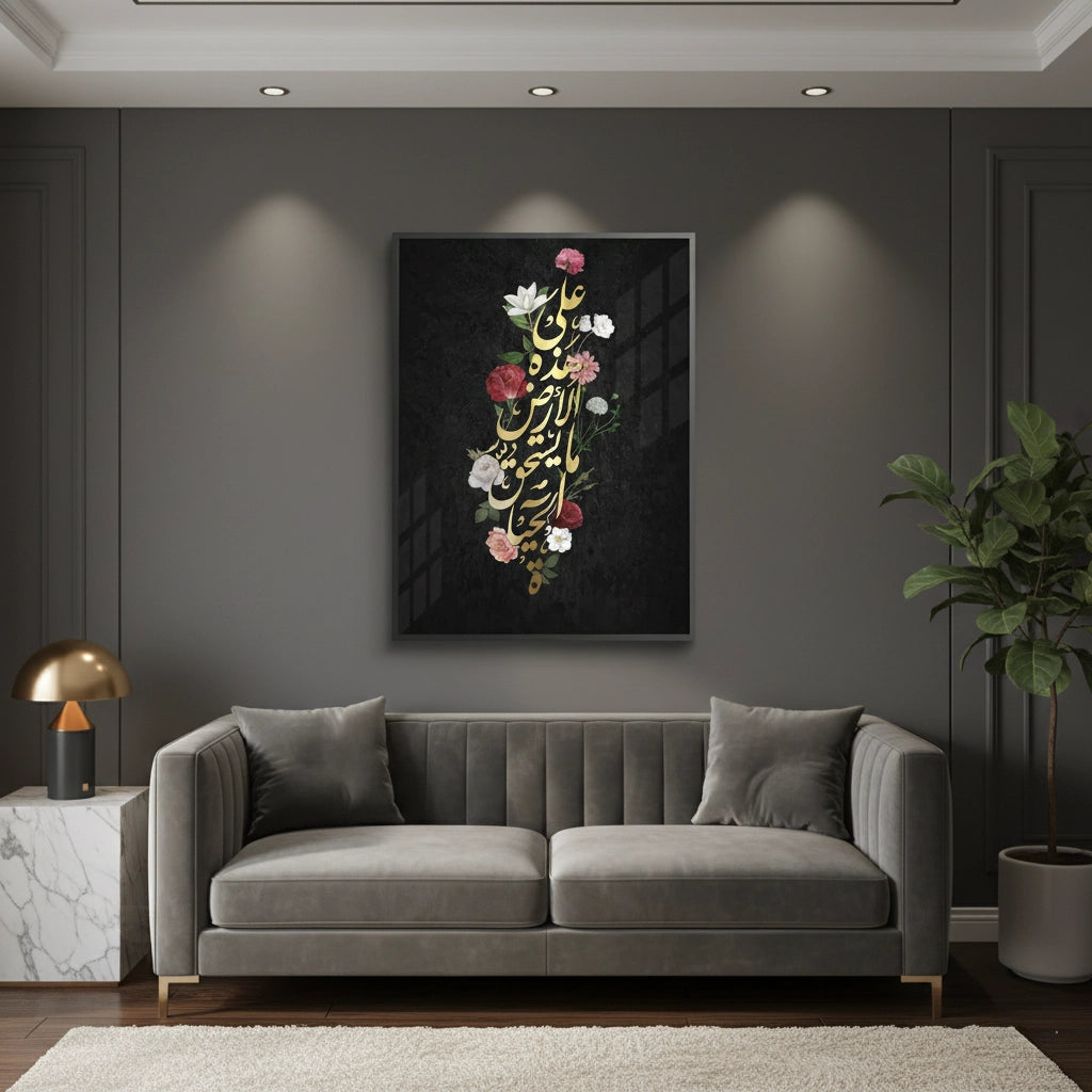 Celebrate the resilience of the human spirit with the Mahmoud Darwish Quote art print from Jasmine Art. Featuring the iconic phrase, "On this earth, there is that which deserves life," in elegant golden Arabic calligraphy, this piece is beautifully intertwined with a vibrant bouquet of vintage-style flowers. The striking metallic gold against a deep textured black background symbolizes hope and beauty even in darkness. Finished with our signature premium vertical texture, this print offers a luxurious tactile finish and gallery-quality depth. A powerful and poetic statement piece for a sophisticated living room, a study, or a cultural gallery in Dubai.