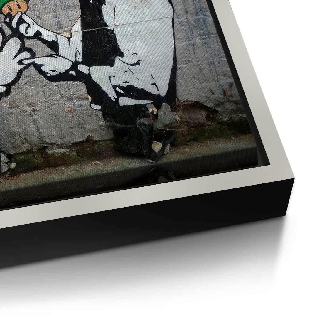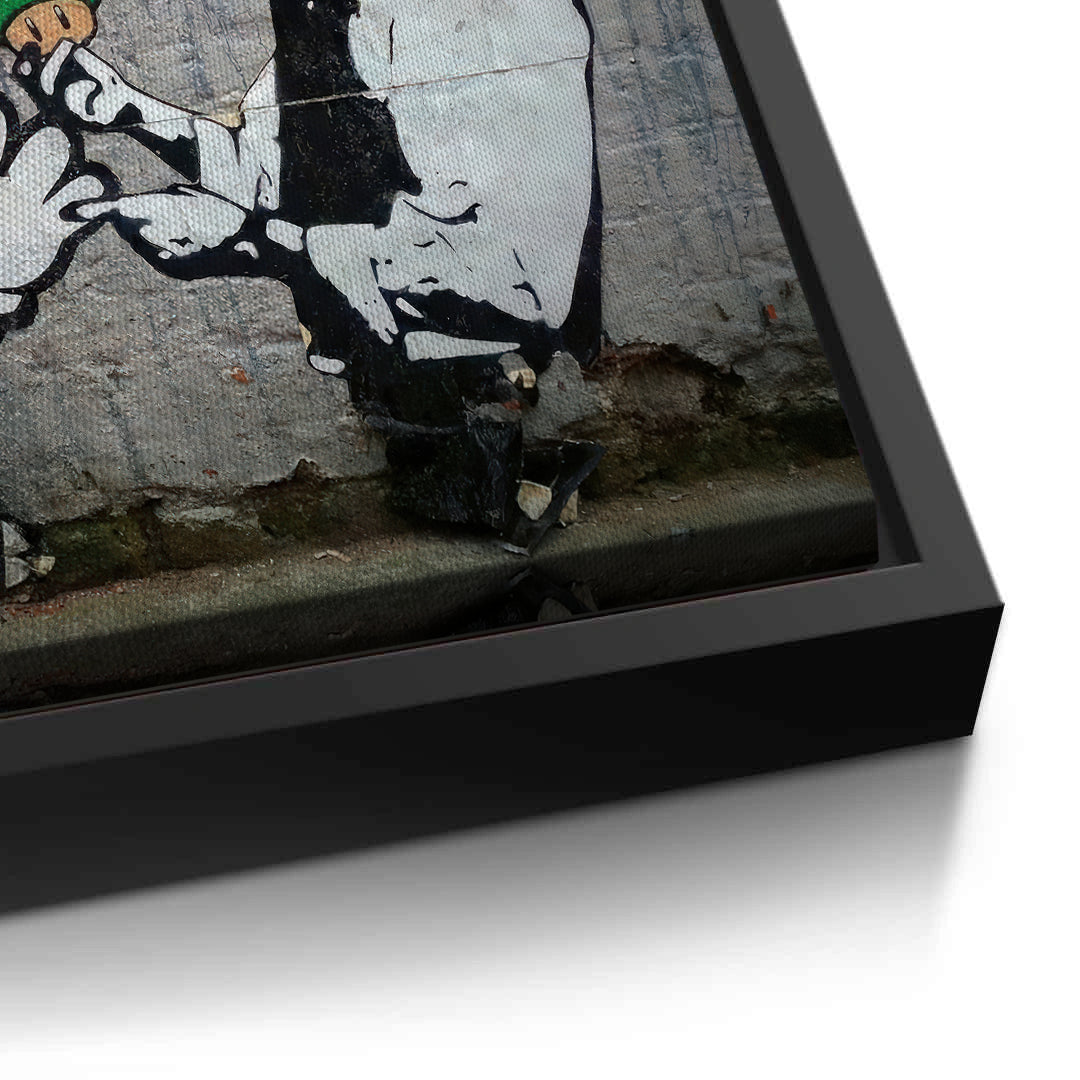 Add a playful yet provocative touch to your decor with Mario & Police Officer from Jasmine Art’s Banksy series. This iconic street-art print features Super Mario being searched by an officer, a satirical take on gaming culture and urban authority. The gritty brick-wall background and vibrant character colors create a striking visual narrative. Finished with our signature premium vertical texture, this artwork provides exceptional tactile depth and a high-end gallery finish. A perfect conversation starter for a gaming room, a modern lounge, or a creative studio in Dubai.
